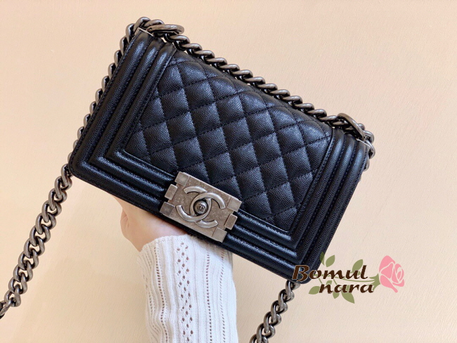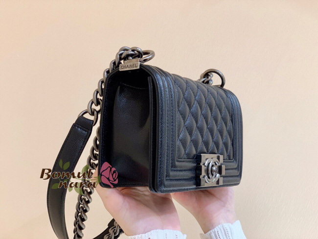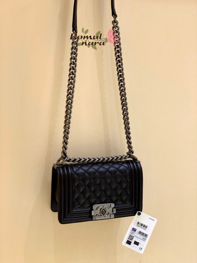 [스페셜오더]CHANEL-A67085 샤넬 블랙 캐비어 루테늄 메탈 스몰 보이 플랩 백