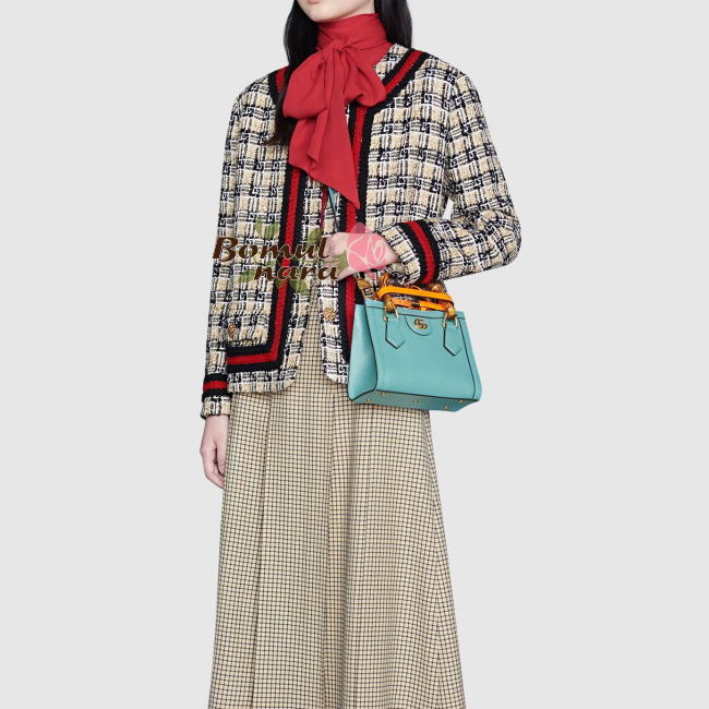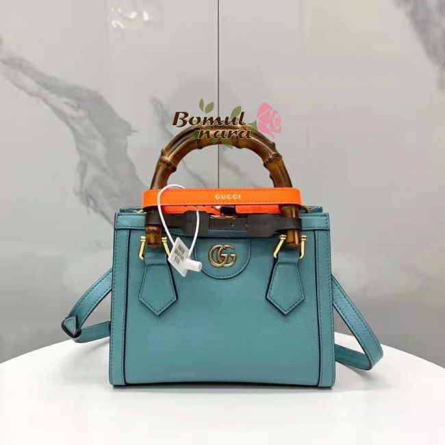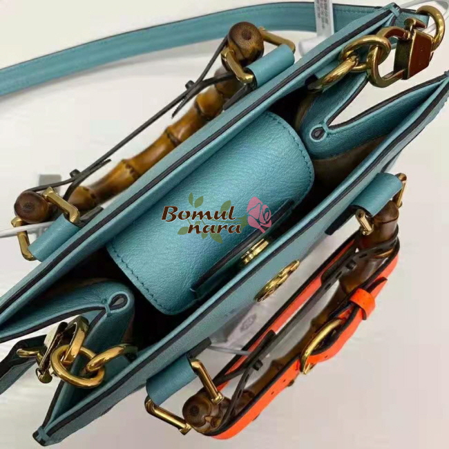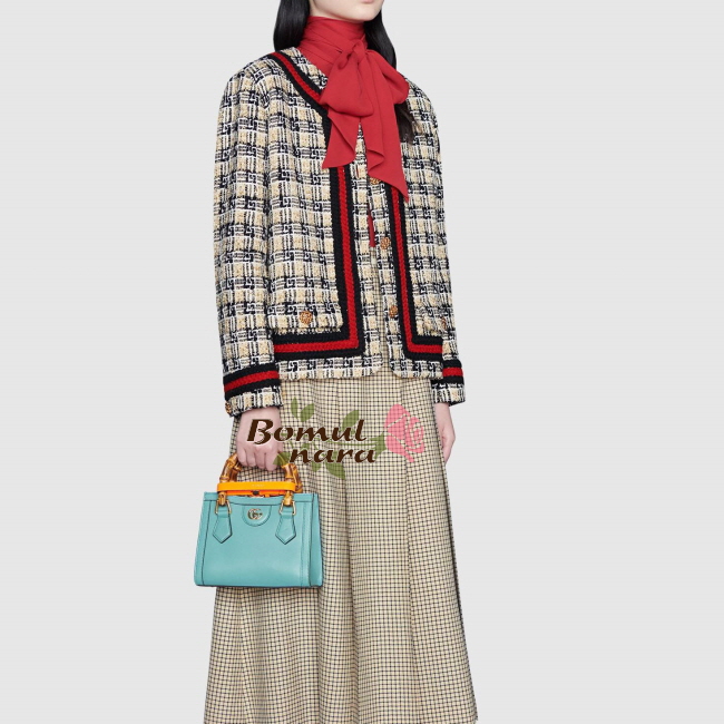 [스페셜오더]GUCCI-655661 4972 구찌 라이트 블루 다이애나 뱀부 핸들 미니 토트 백