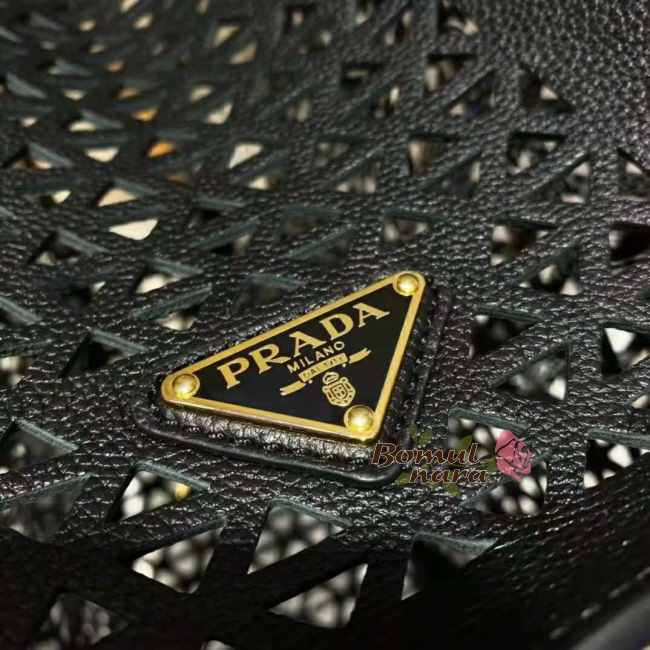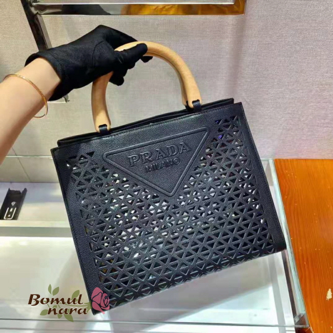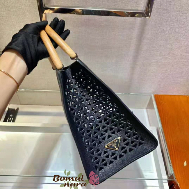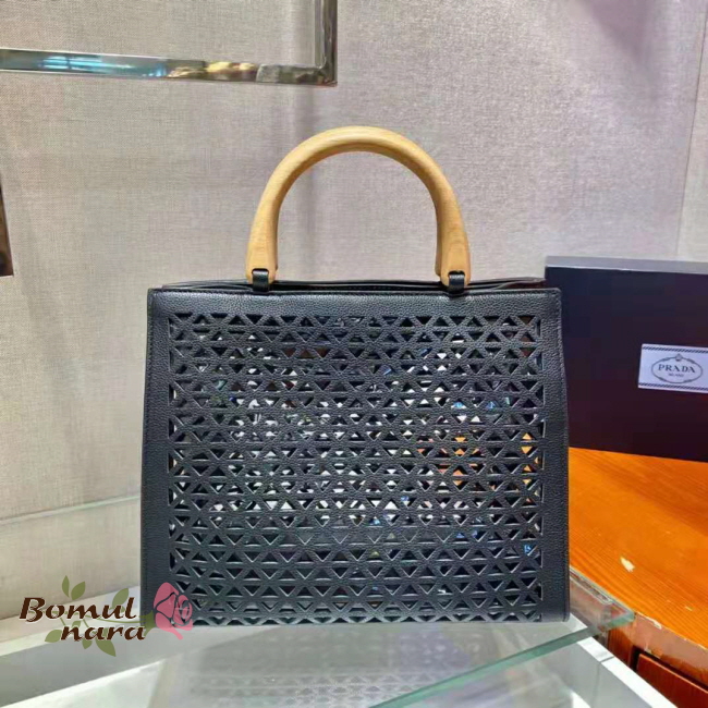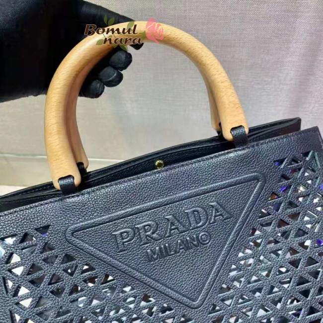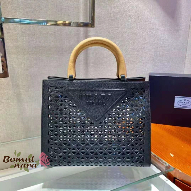 [스페셜오더]PRADA-1BG405 프라다 블랙 트라이앵글 로고 아일릿 탑 핸들 백