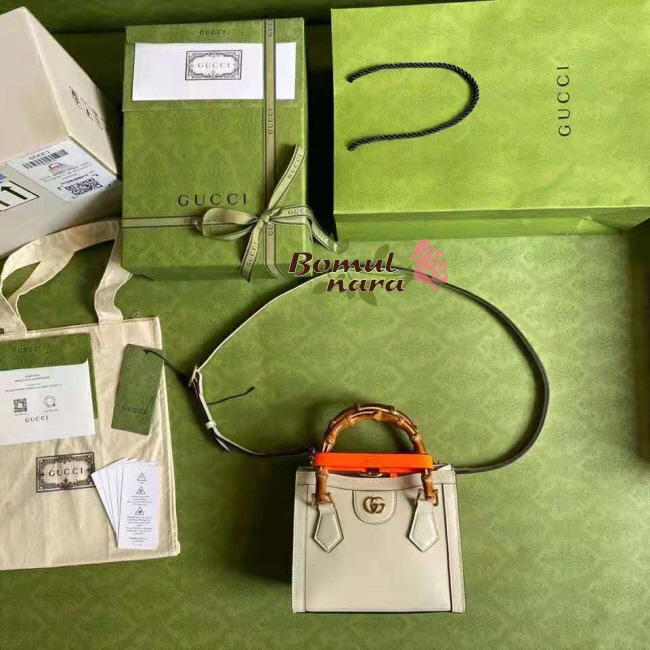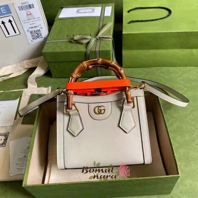 [스페셜오더]GUCCI-655661 9060 구찌 화이트 다이애나 뱀부 핸들 미니 토트 백