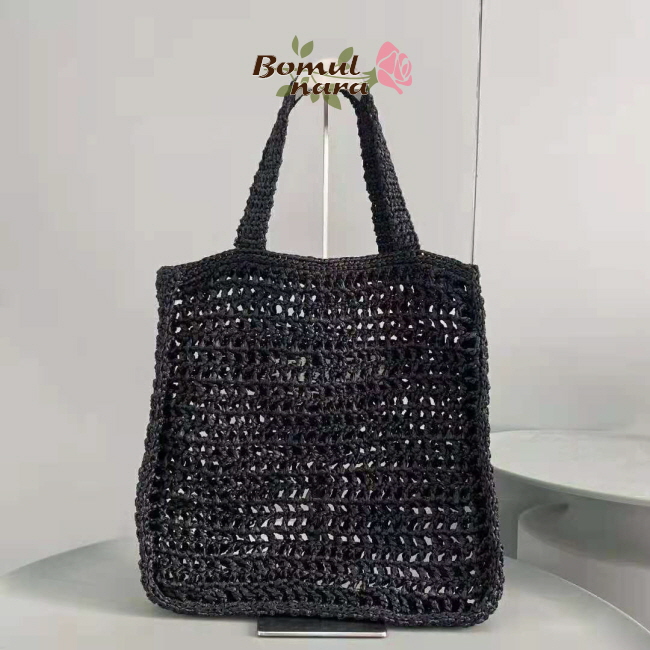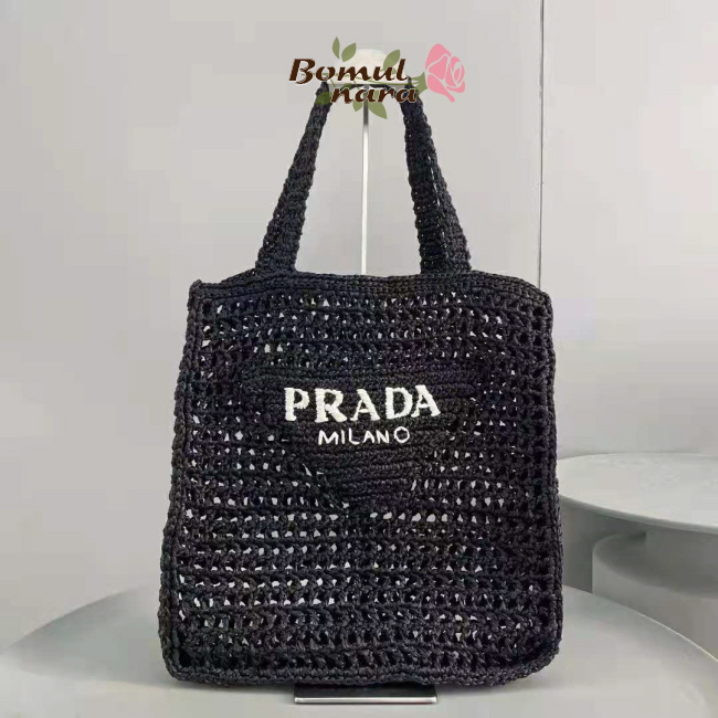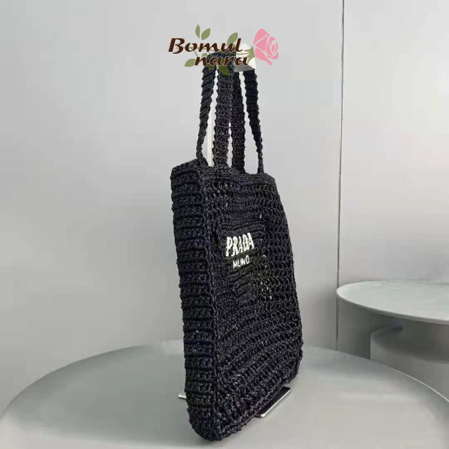 [스페셜오더]PRADA-1BG393 프라다 블랙 라피아 토트 백