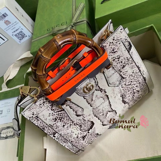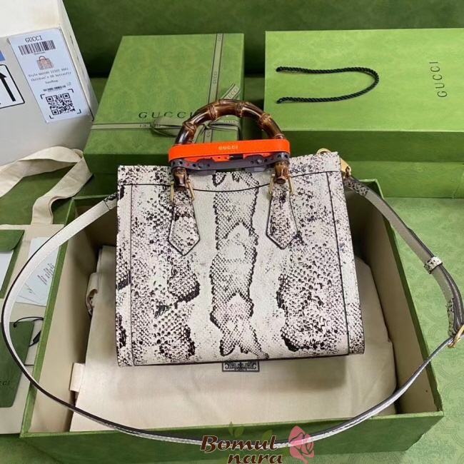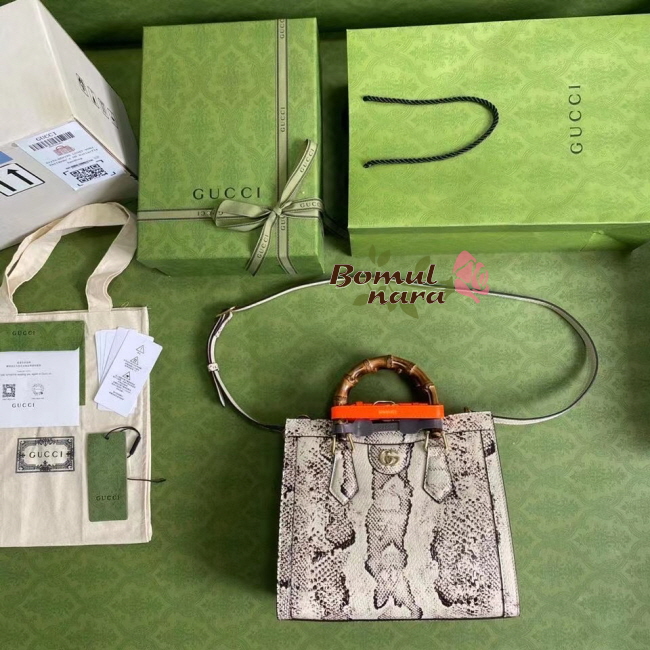 [스페셜오더]GUCCI-660195 9561 구찌 내추럴 다이애나 스몰 뱀부 핸들 파이톤 토트백
