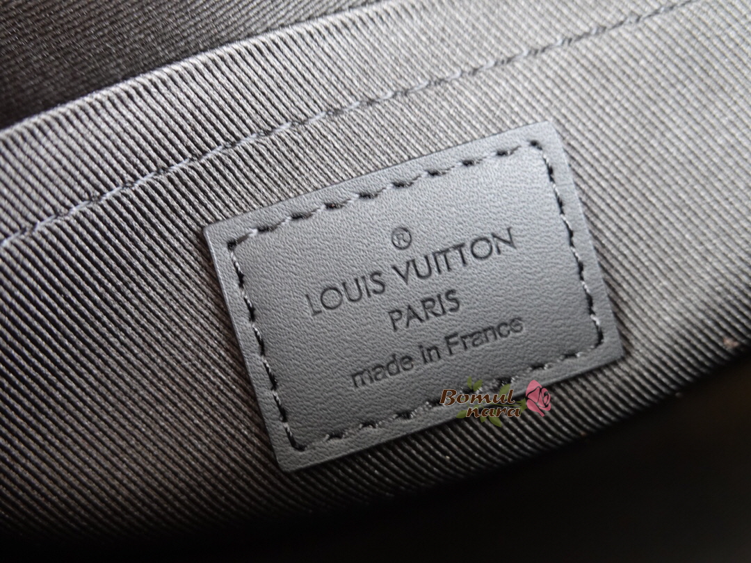 가죽 모서리와 옆면 밴드, LV 키 벨이 특징.