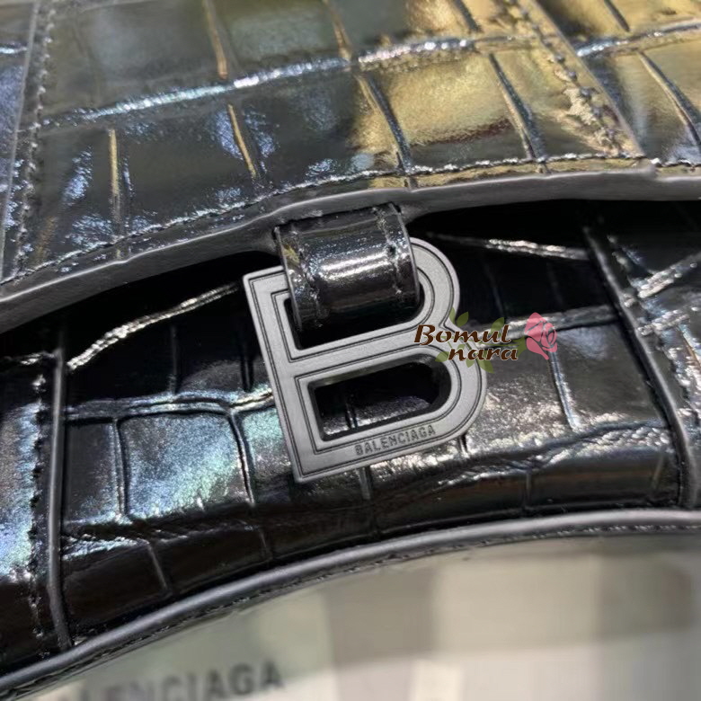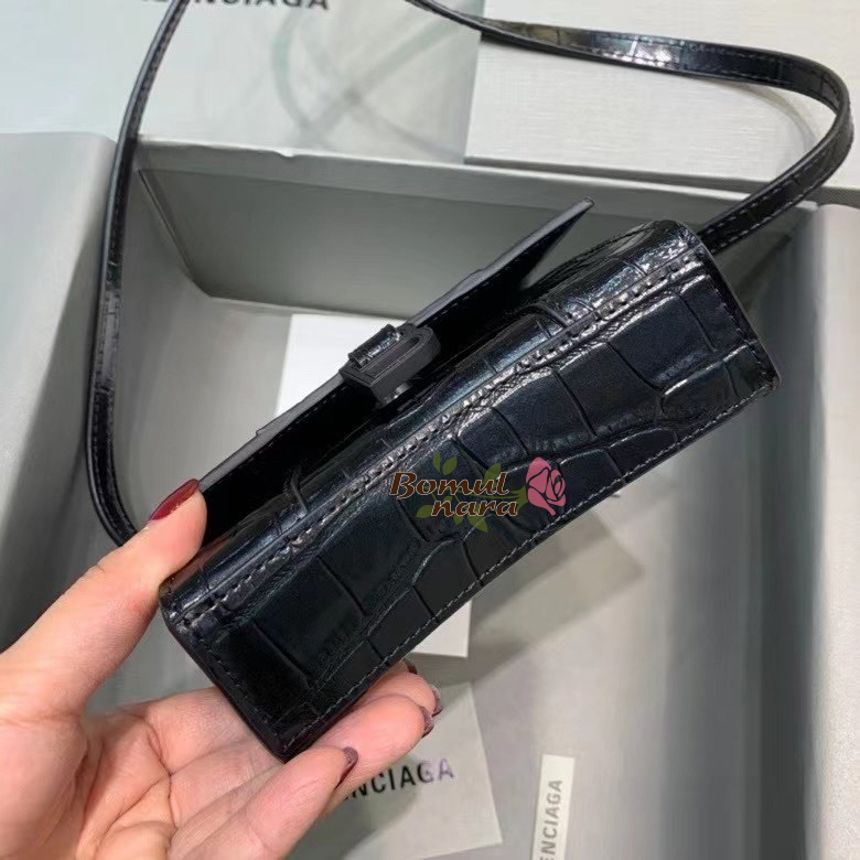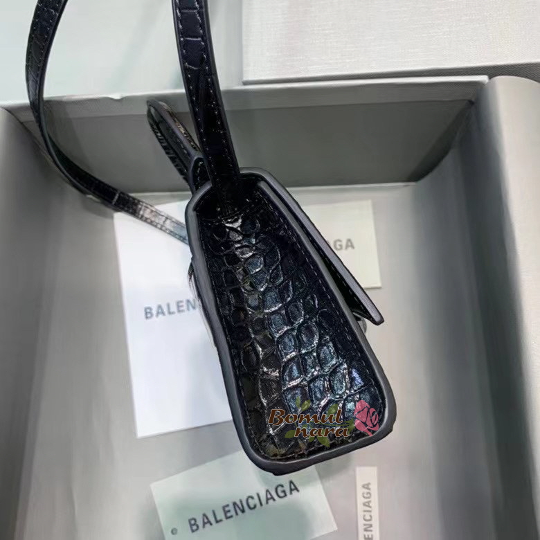 [스페셜오더]BALENCIAGA-637372 발렌시아가 블랙 아워글래스 크로커다일 미니 탑 핸들 백