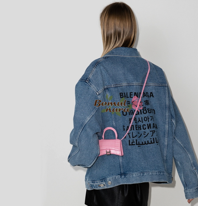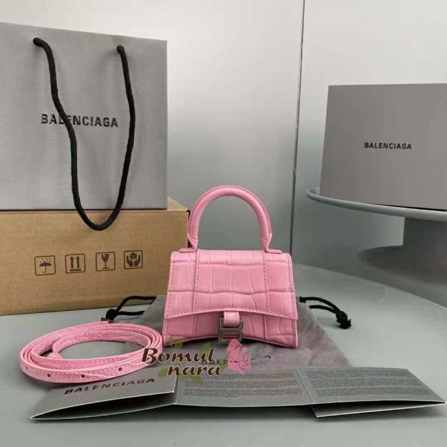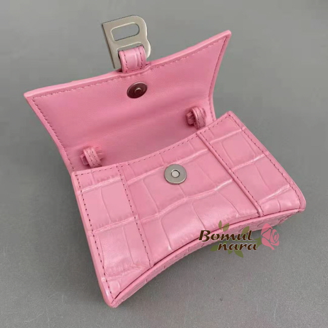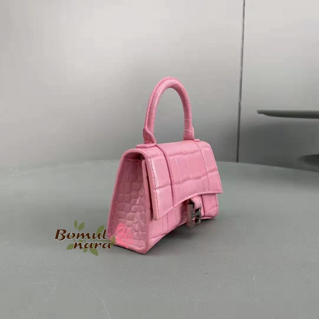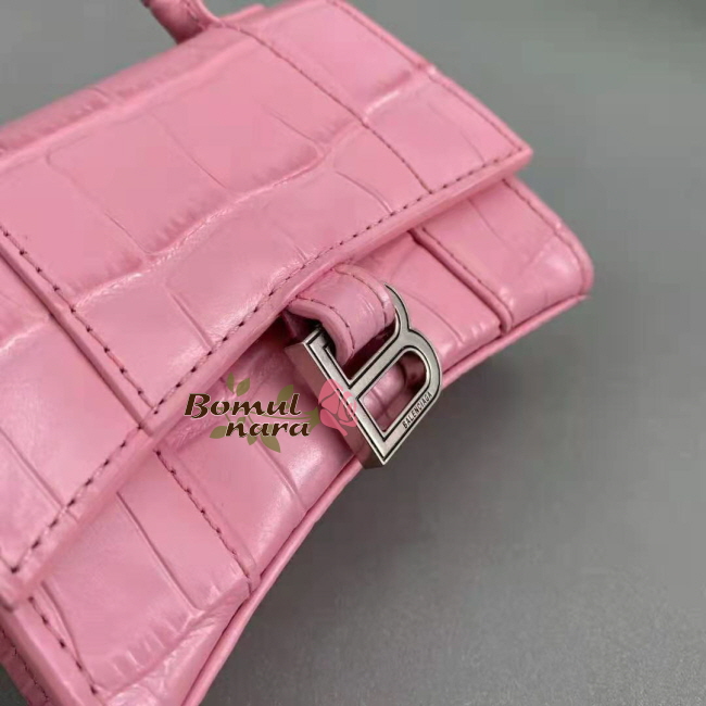 [스페셜오더]BALENCIAGA-6373721 발렌시아가 핑크 아워글래스 크로커다일 엠보싱 미니 탑 핸들 백 가격 : 300,000원
