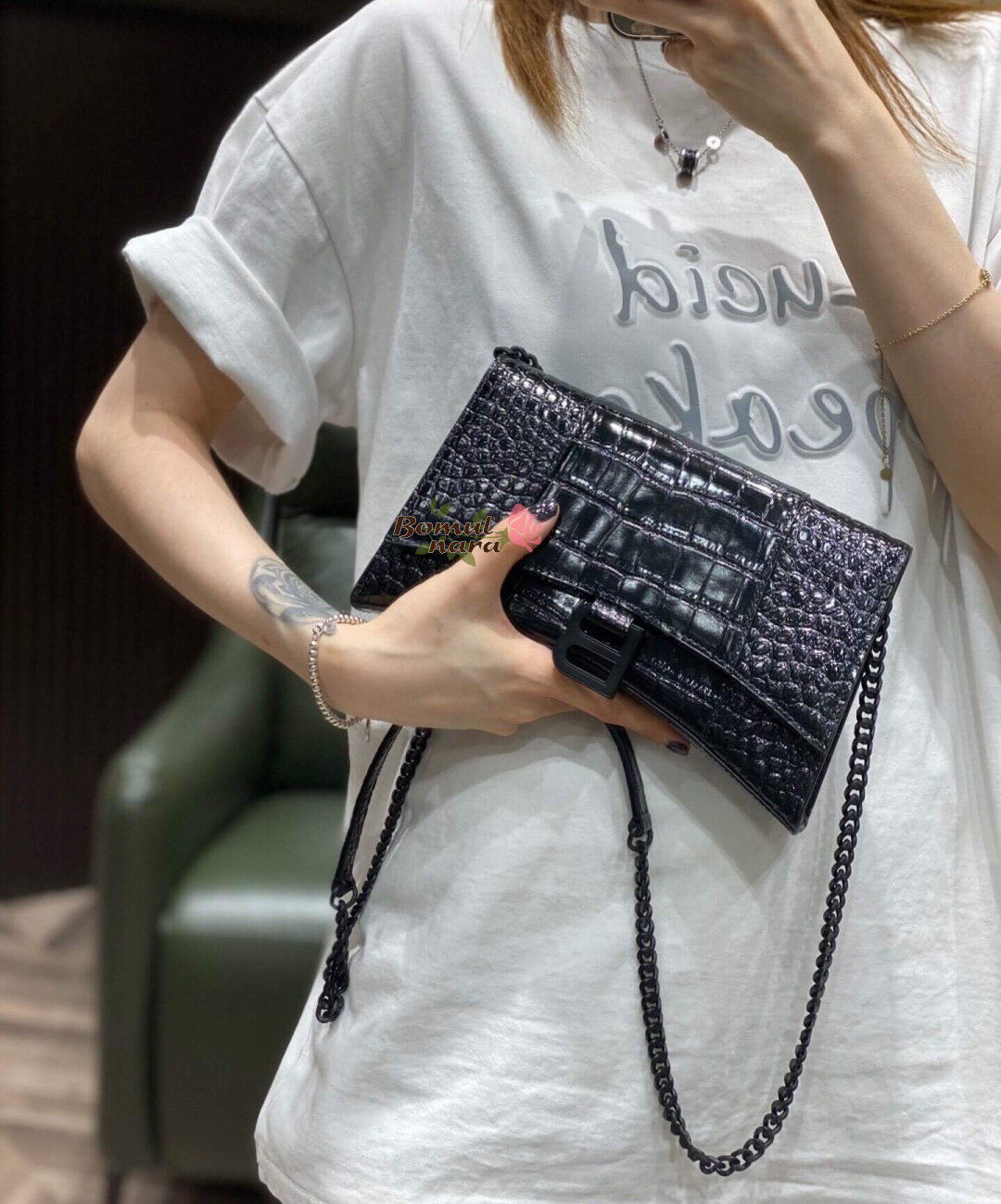 [스페셜오더]BALENCIAGA-644973 발렌시아가 블랙 아워글래스 이븐 체인 숄더백