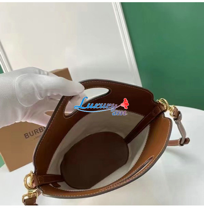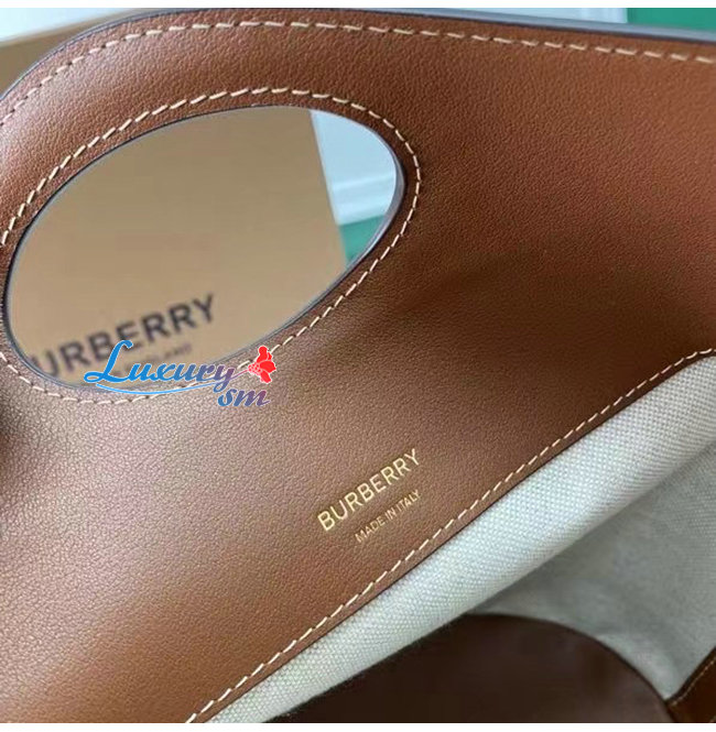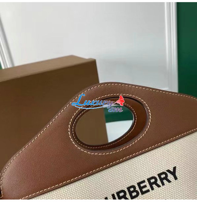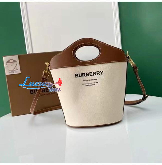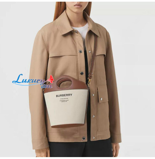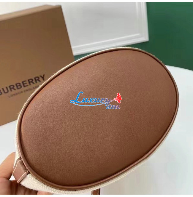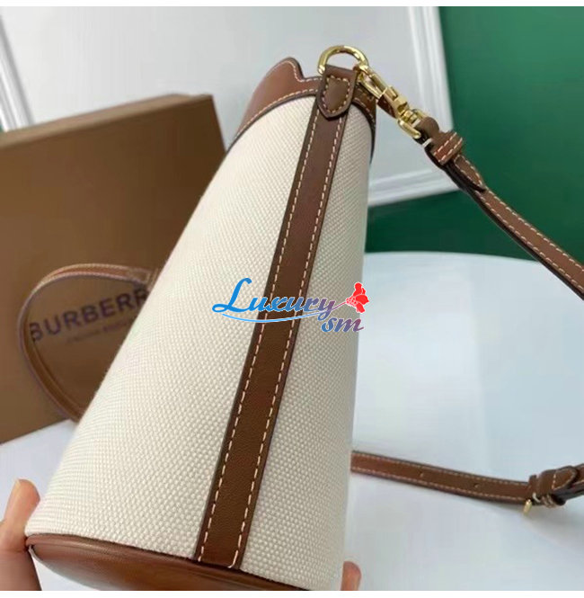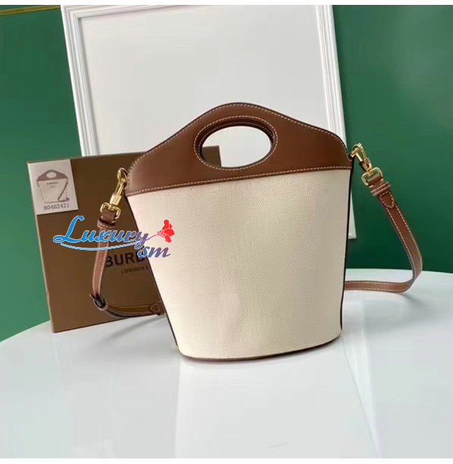 [스페셜오더]BURBERRY-80462421 버버리 내추럴/탠 스몰 투톤 캔버스 레더 포켓 버킷 백