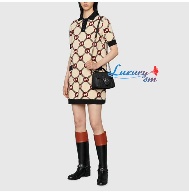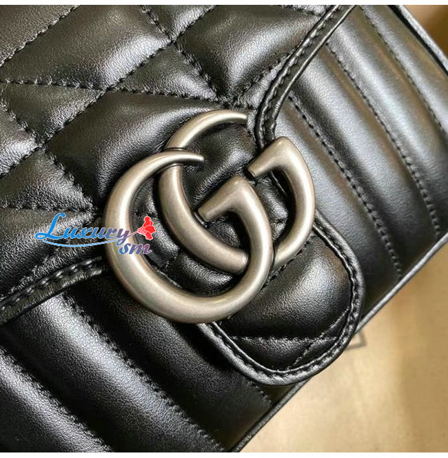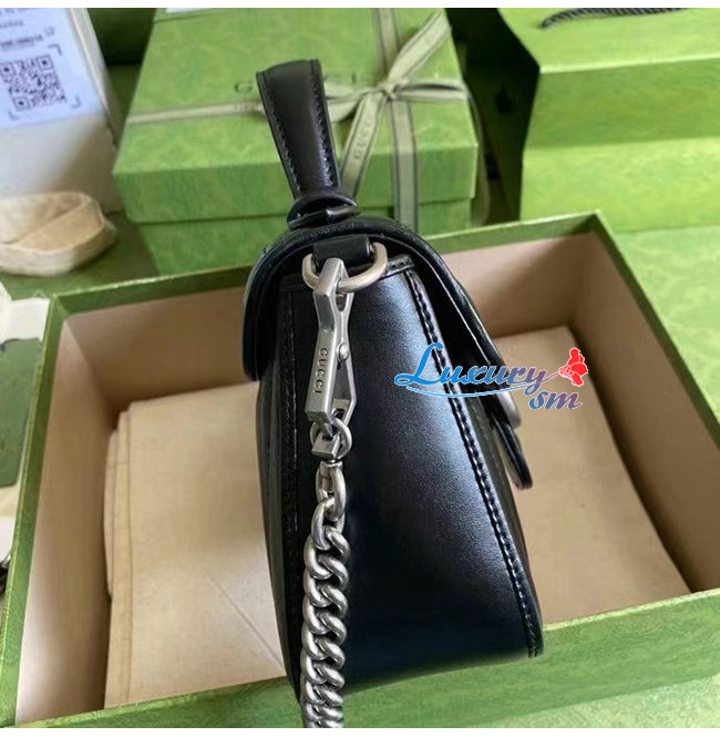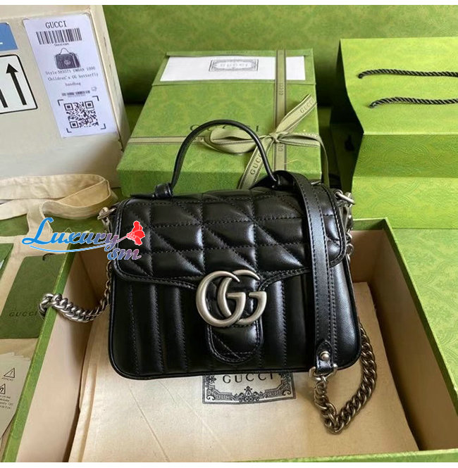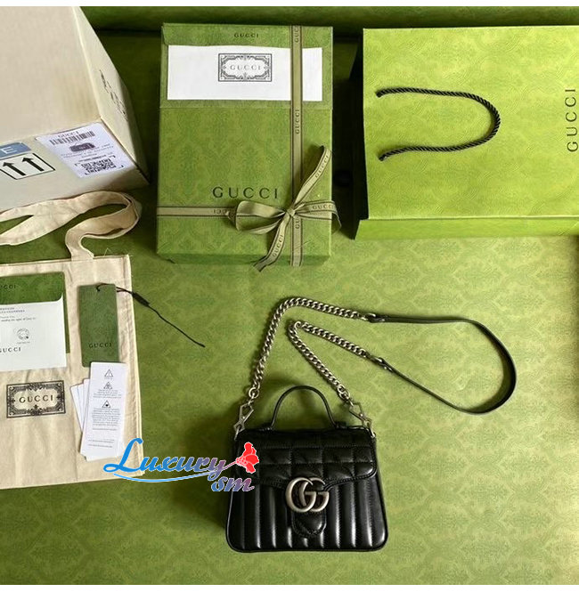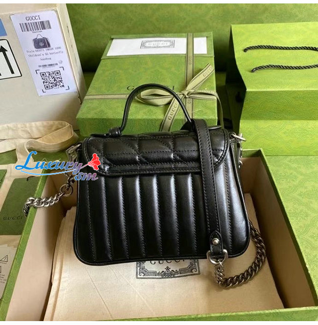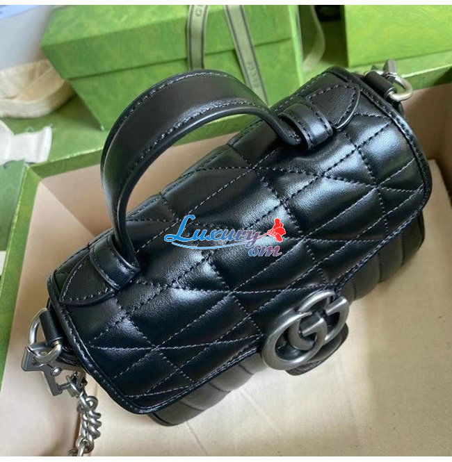 [스페셜오더]GUCCI-583571 8277 구찌 GG 마몽 블랙 사선형 마틀라세 가죽 미니 탑 핸들백