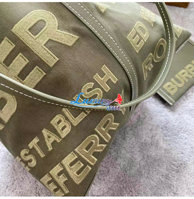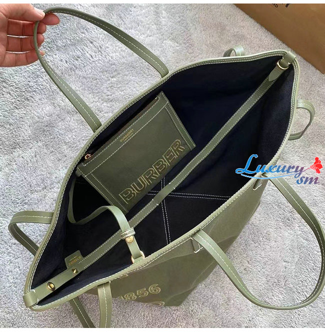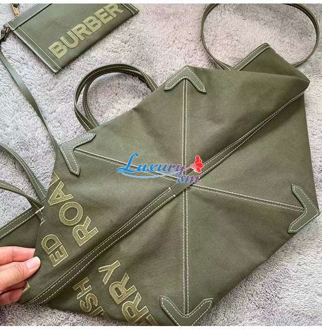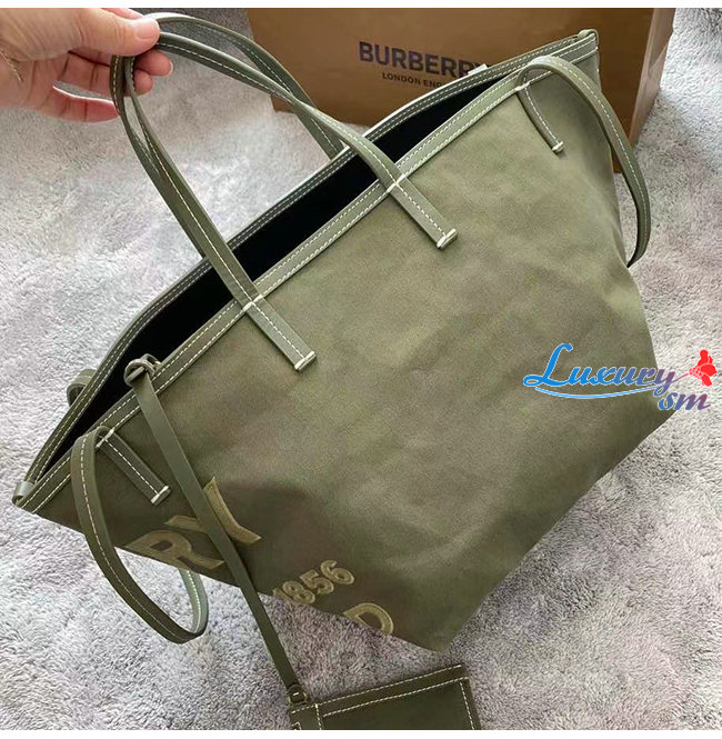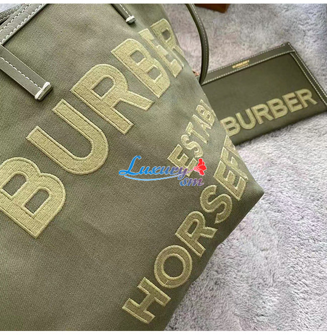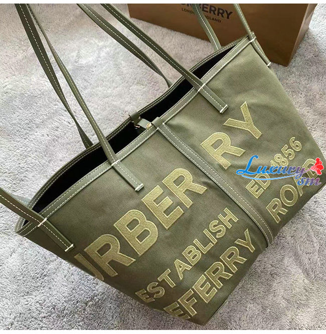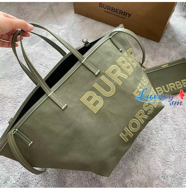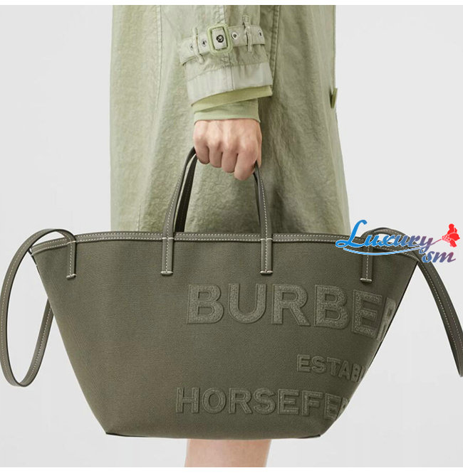[스페셜오더]BURBERRY-80418011 버버리 카키 미니 호스페리 리넨 코튼 캔버스 비치 토트