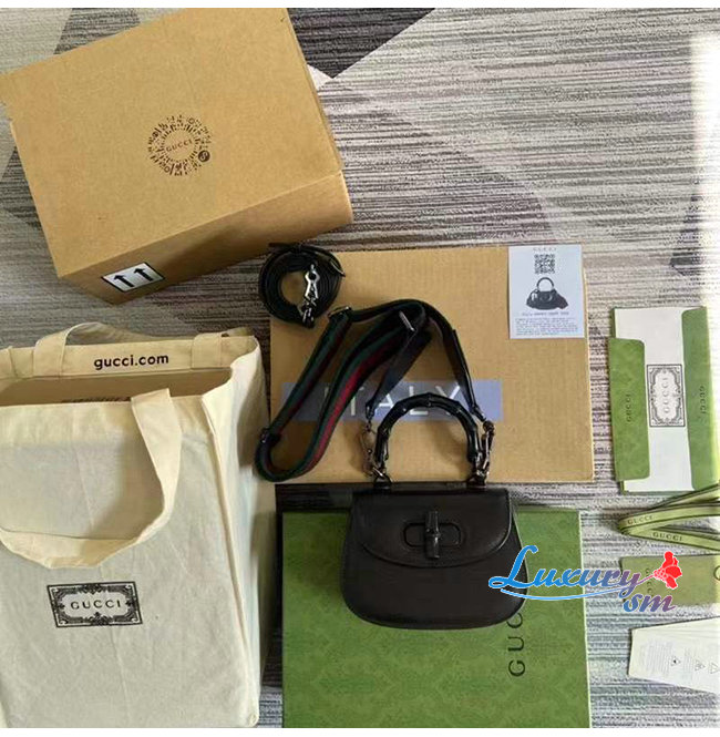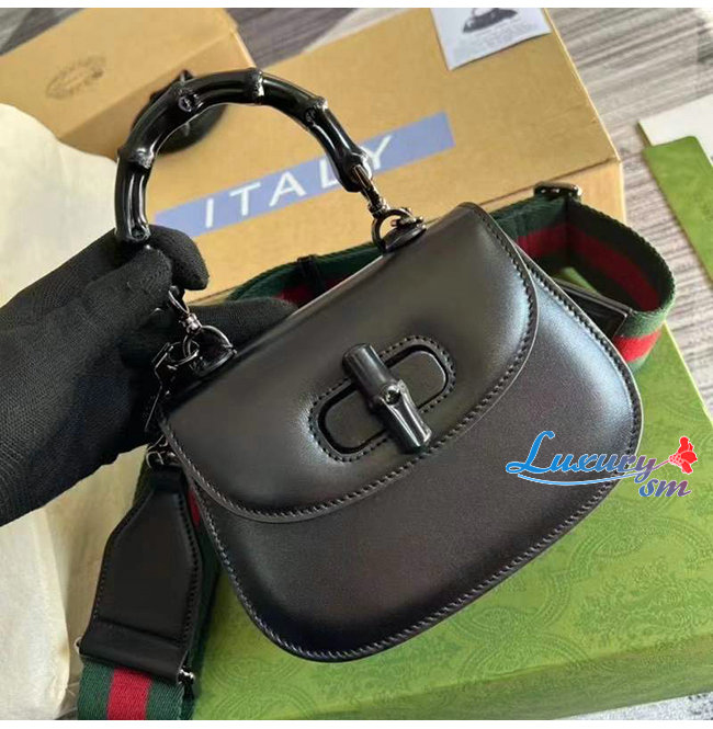 [스페셜오더]GUCCI-686864 1060 구찌 블랙 가죽 뱀부 미니 탑 핸들백