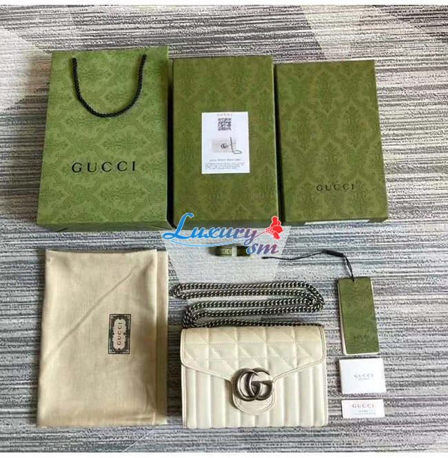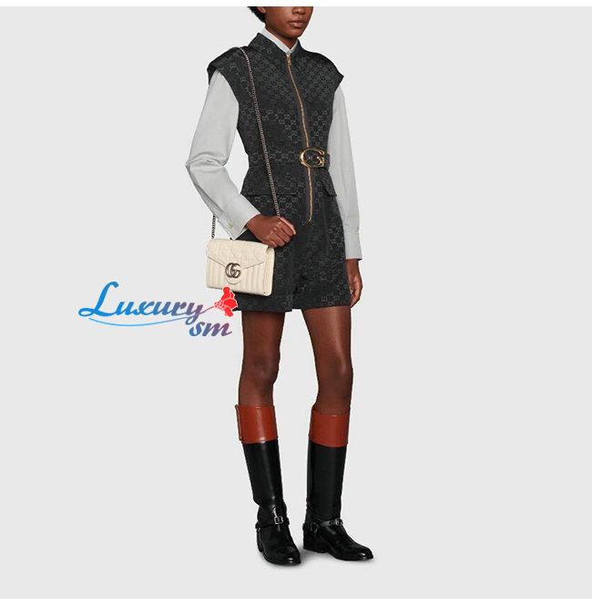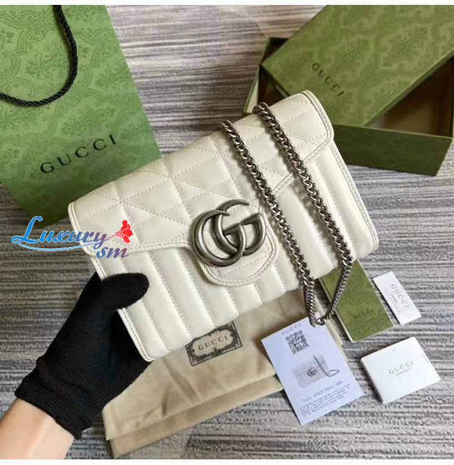 [스페셜오더]GUCCI-474575 9022 구찌 GG Marmont 마틀라세 가죽 미니 체인 백 화이트