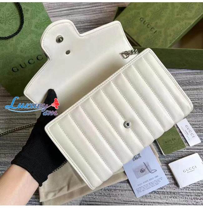 [스페셜오더]GUCCI-474575 9022 구찌 GG 마몽 화이트 가죽 마틀라세 미니백