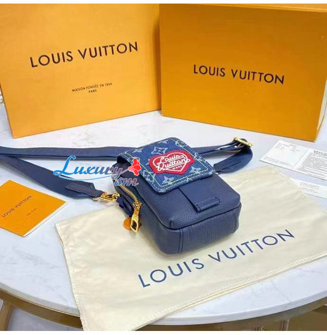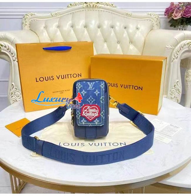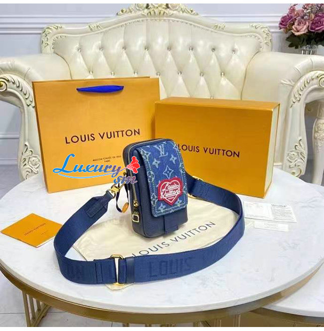 [스페셜오더]LOUIS VUITTON-M81060 루이비통 블루 모노그램 데님 플랩 더블 폰 파우치