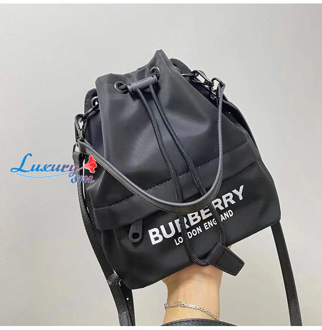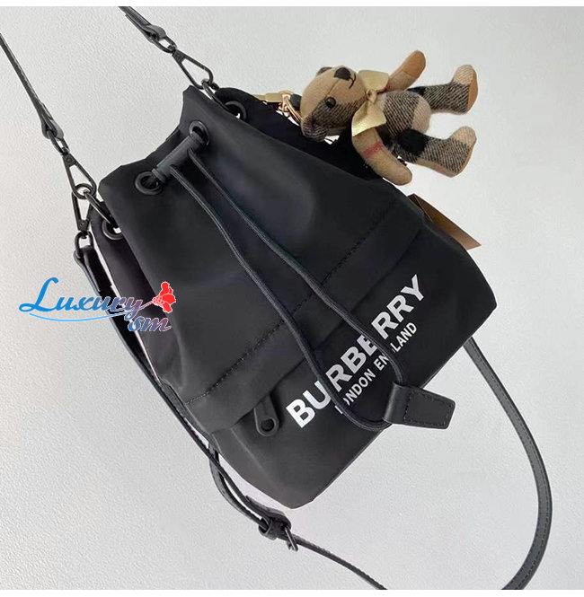 [스페셜오더]BURBERRY-80321881 버버리 블랙 로고 프린트 ECONYL 드로스트링 파우치