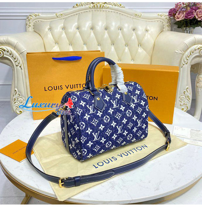 [스페셜오더]LOUIS VUITTON-M59609 루이비통 네이비 모노그램 데님 스피디 반둘리에 25