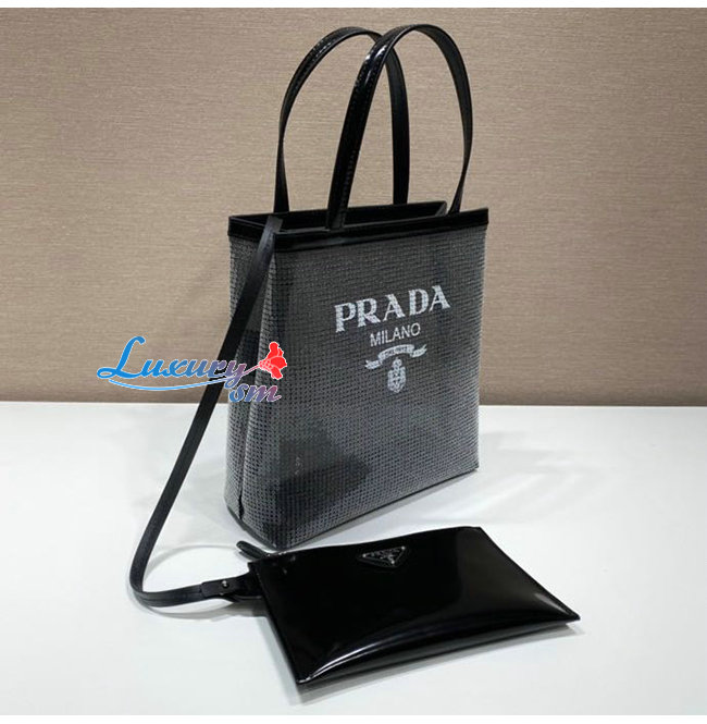 [스페셜오더]PRADA-1BG417 프라다 블랙 시퀸 메쉬 스몰 토트 백