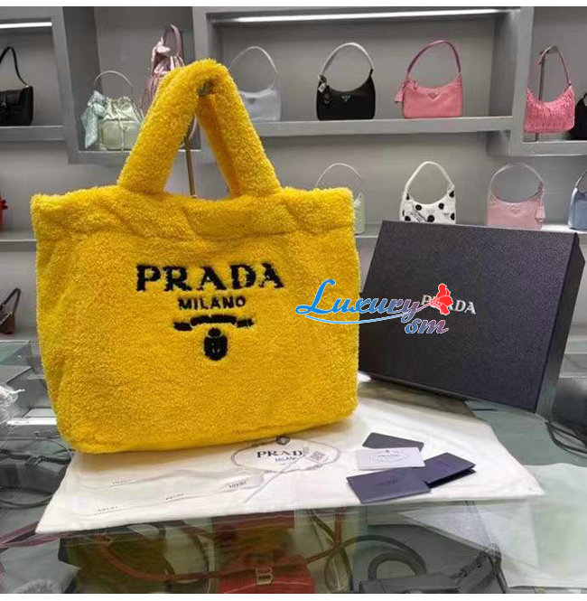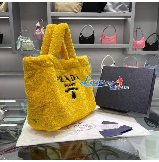 [스페셜오더]PRADA-1BG130 프라다 옐로우 시어링 테리 토트 백