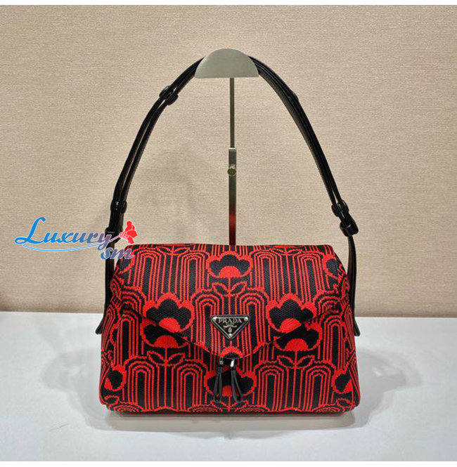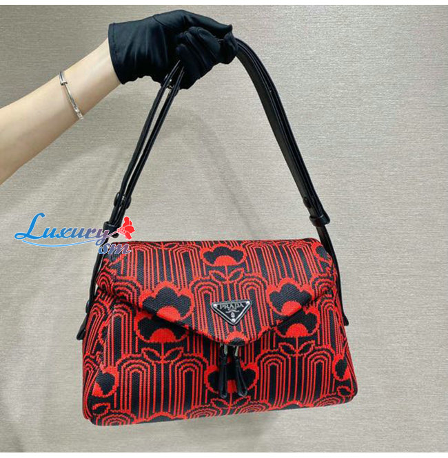 [스페셜오더]PRADA-1BC165 프라다 레드/블랙 자카드 니트 시뇨 백