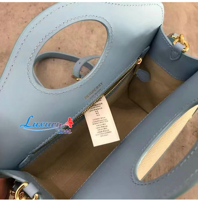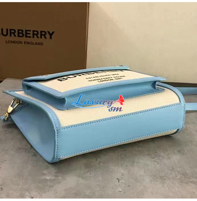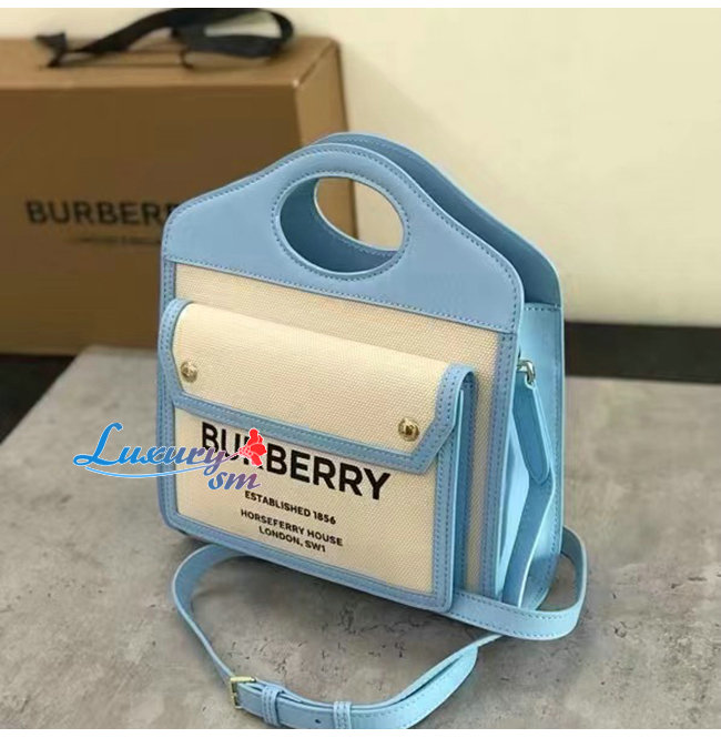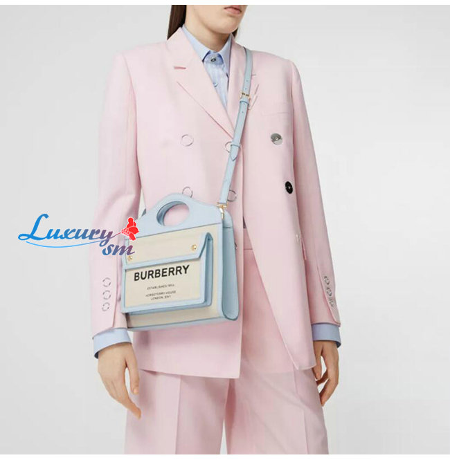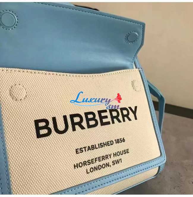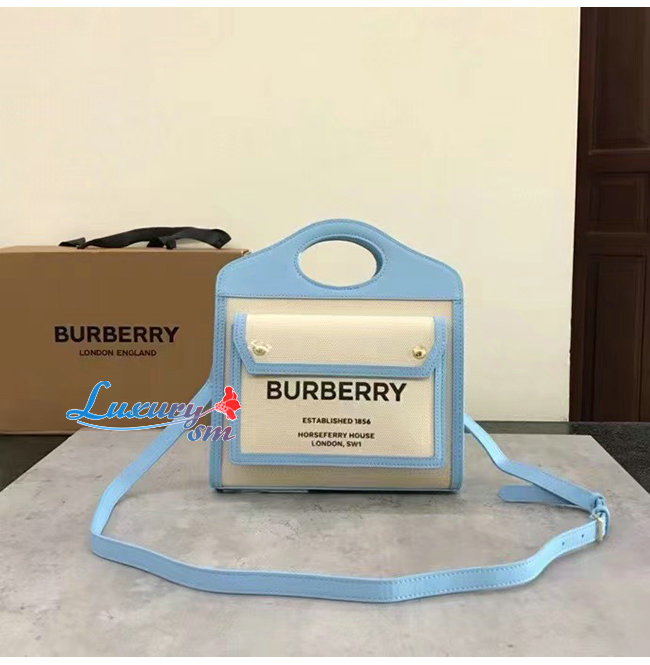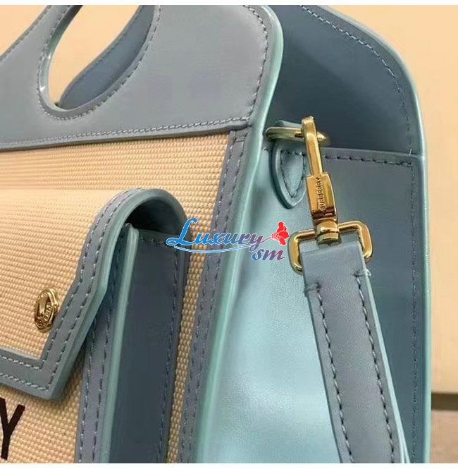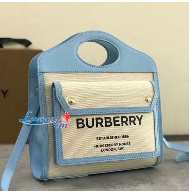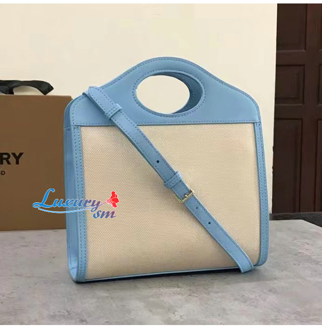 BURBERRY-80434931 버버리 페일 블루 미니 투톤 캔버스 레더 포켓 백