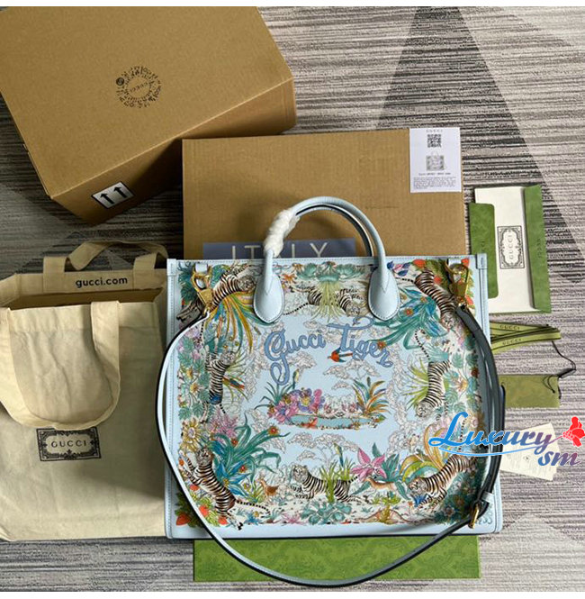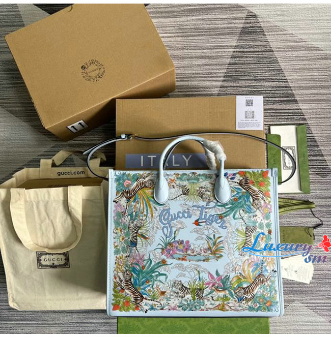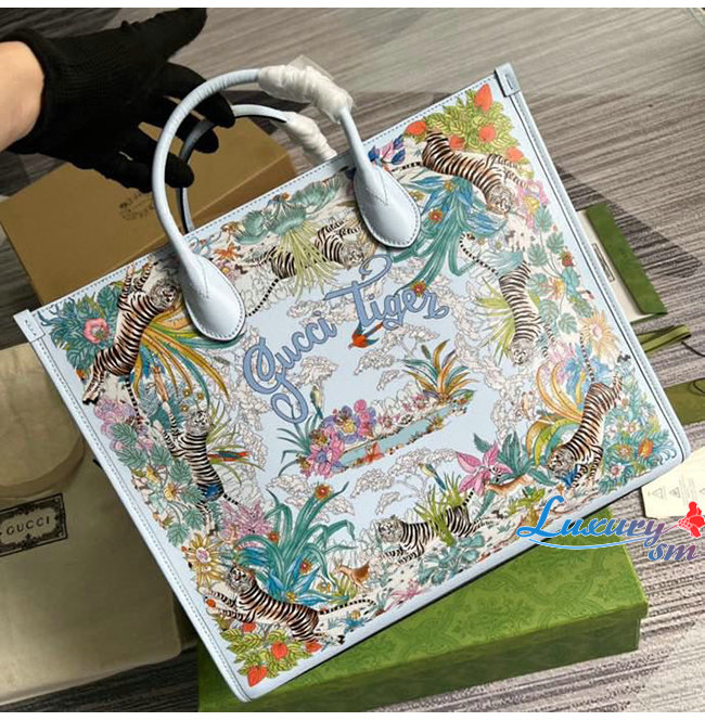 [스페셜오더]GUCC*-687827 4861 구찌 라이트 블루 구찌 타이거 미디엄 토트백