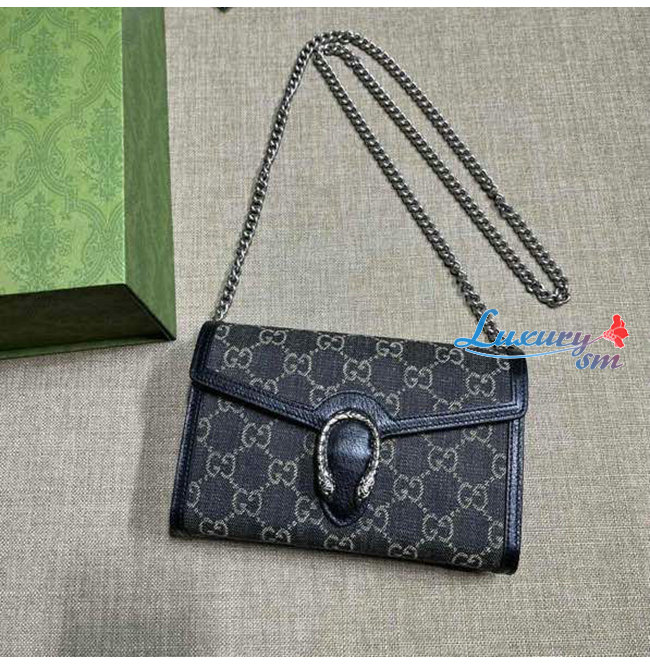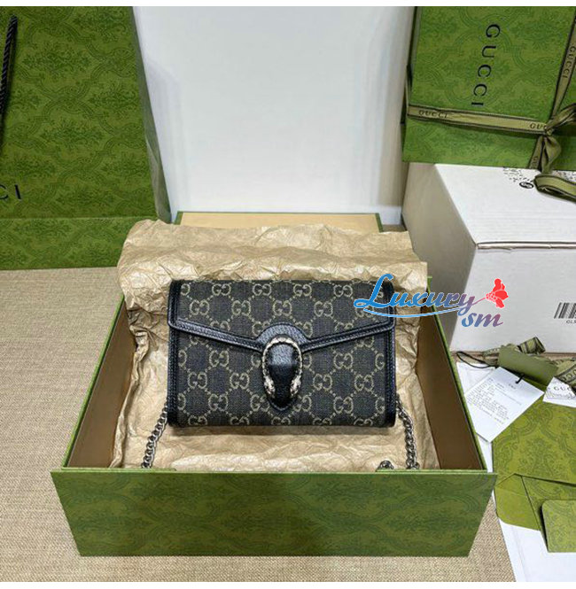 [스페셜오더]GUCCI-401231 4483 구찌 블루 디오니서스 오가닉 GG 데님 미니 체인 지갑