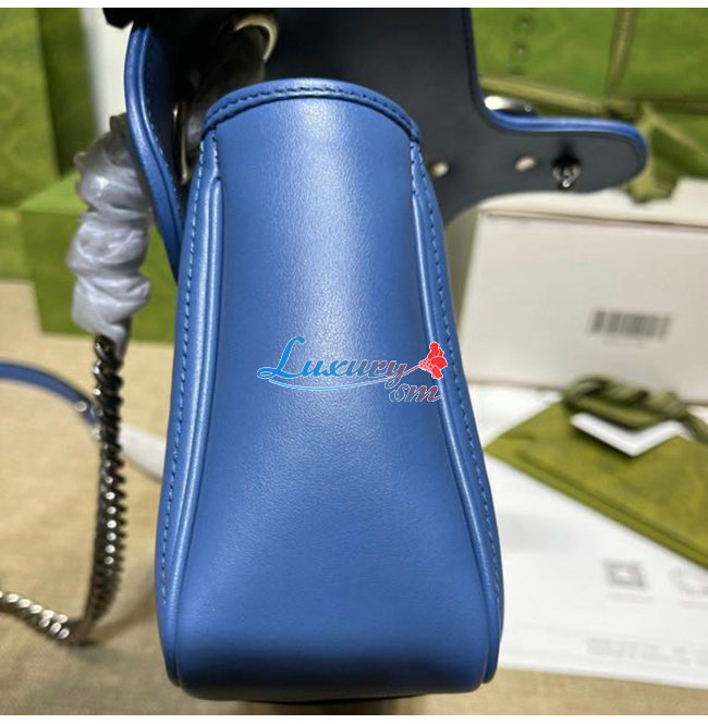 [스페셜오더]GUCCI-443497 4340 구찌 GG 마몽 블루 가죽 스몰 숄더백