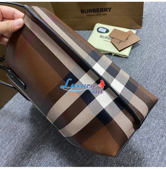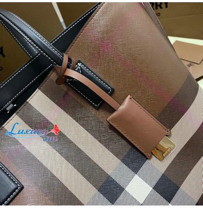 [스페셜오더]BURBER**-80525041 버버리 다크 버치 브라운 미디엄 체크 레더 토트