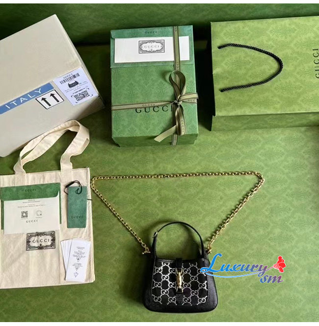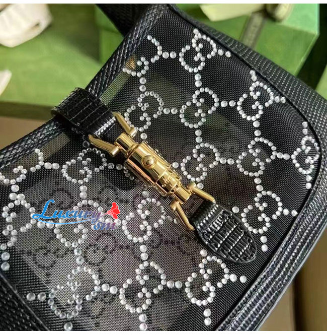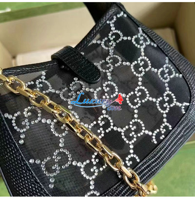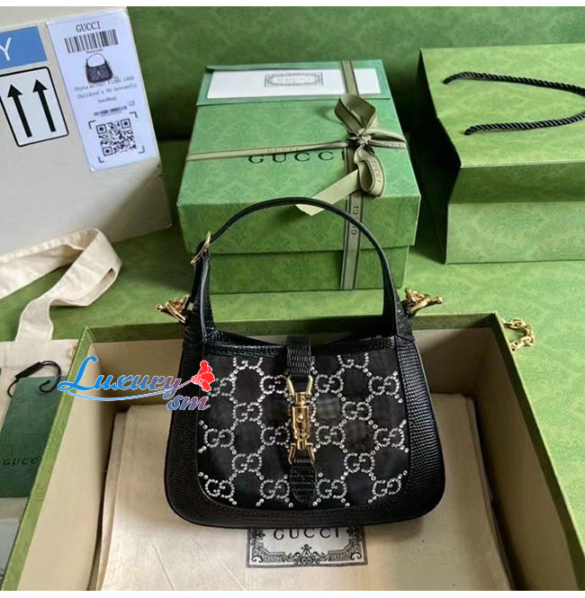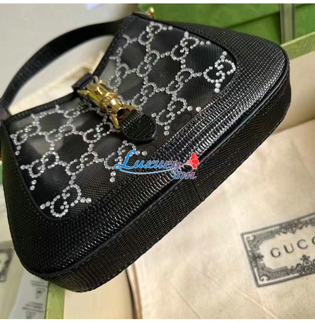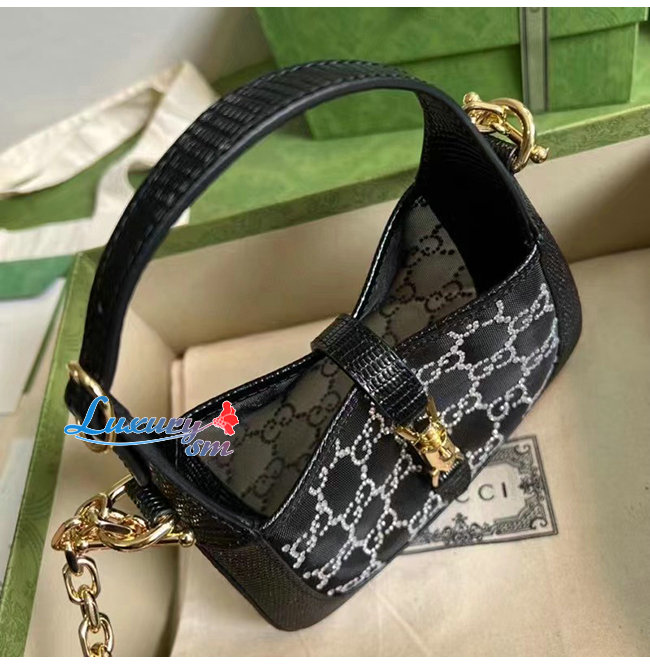 [스페셜오더]GUCC*-677027 1083 구찌 블랙 재키 1961 미니 크리스탈 GG 리자드 백