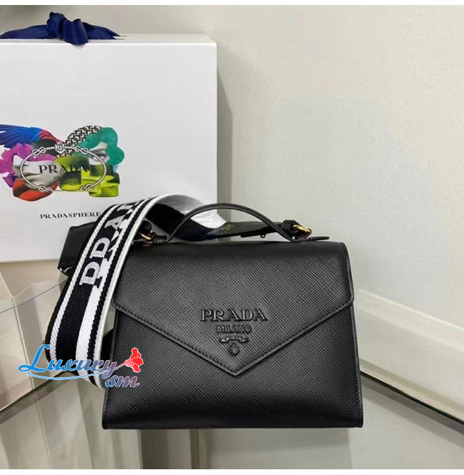 [스페셜오더]PRADA-1BD317 프라다 블랙 사피아노 모노그롬 숄더 백