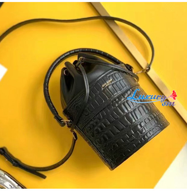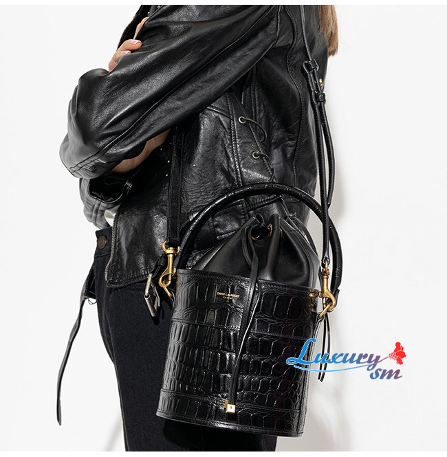 [스페셜오더]SAINT LAURENT-686733 생 로랑 블랙 크로커다일 엠보스드 BAHIA 스몰 버킷백