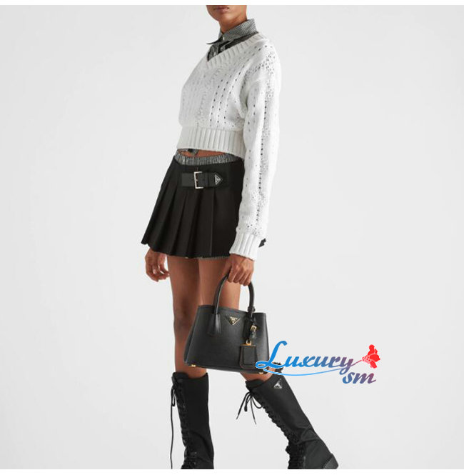 의 프라다 더블 백으로, 세련되고 섬세한 디테일
