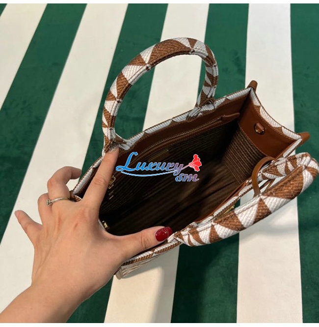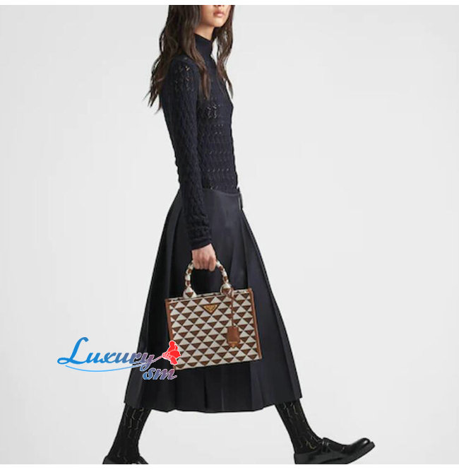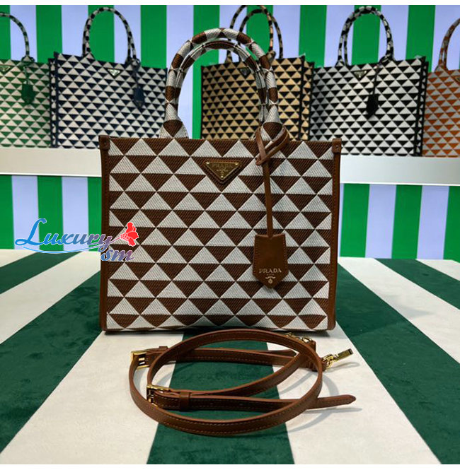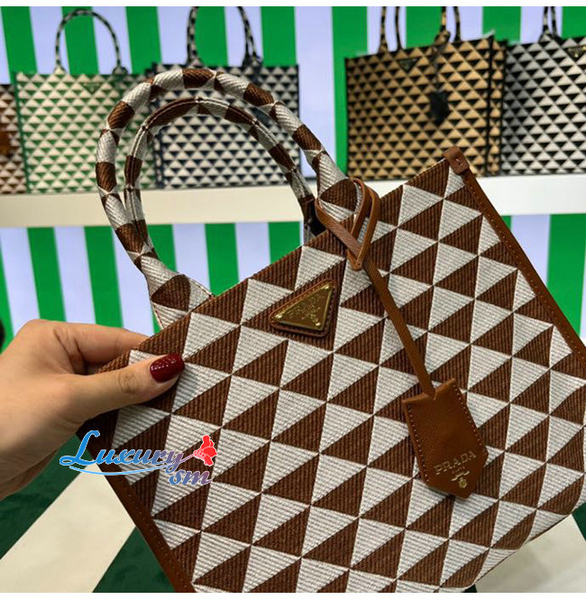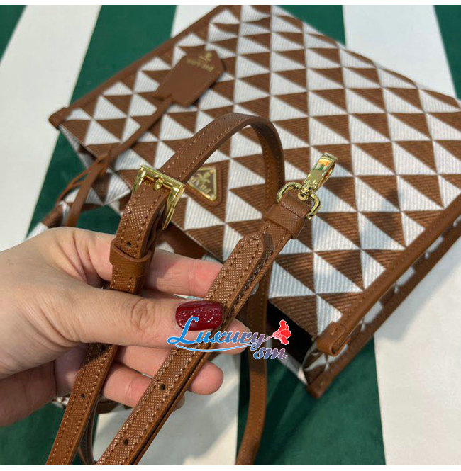 [스페셜오더]PRADA-1BA354 프라다 브라운 소형 프라다 심볼 자카드 패브릭 핸드백
