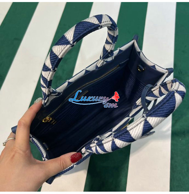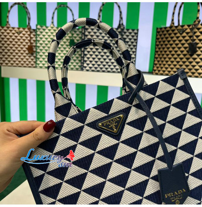 [스페셜오더]PRADA-1BA354 프라다 네이비 소형 프라다 심볼 자카드 패브릭 핸드백