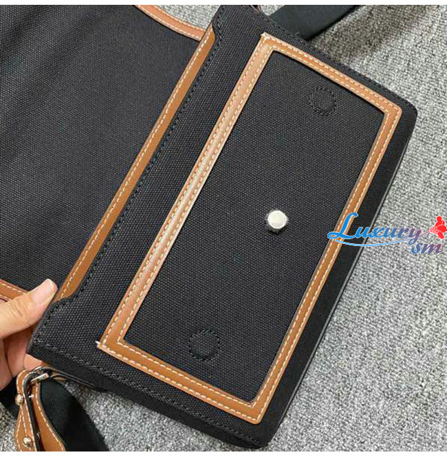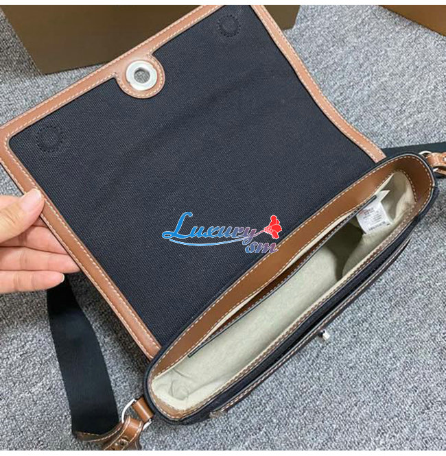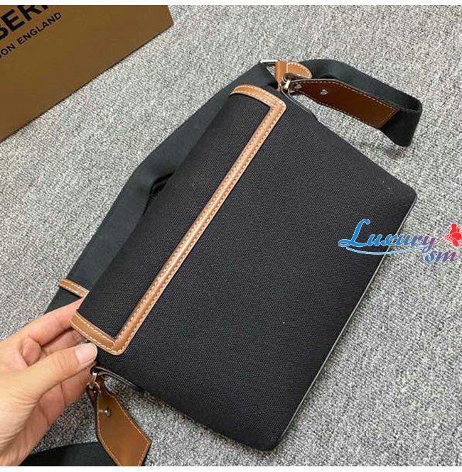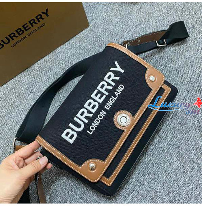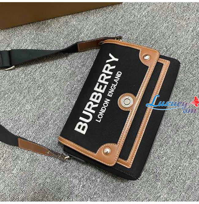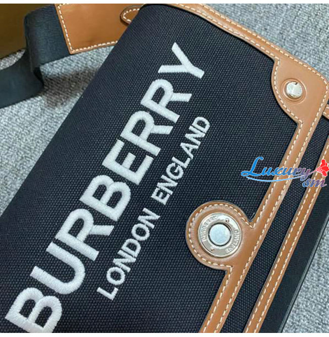[스페셜오더]BURBERRY-80557481 버버리 블랙 호스페리 모티프 캔버스 노트 크로스바디 백