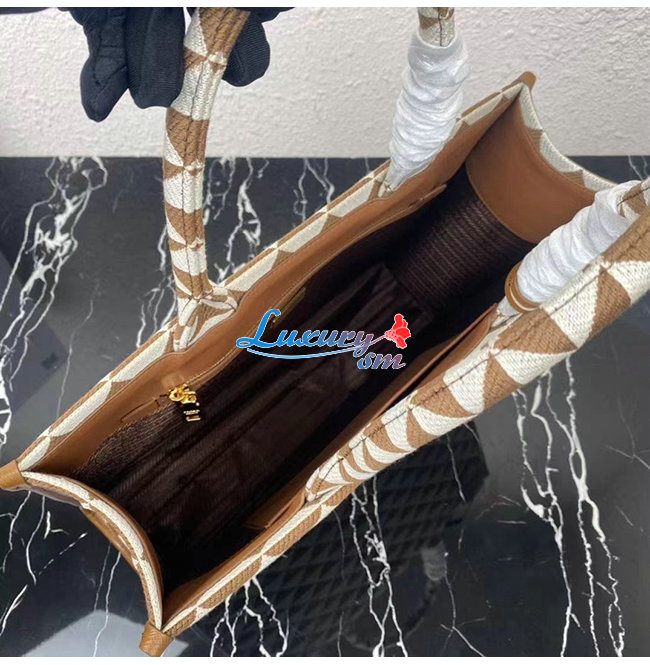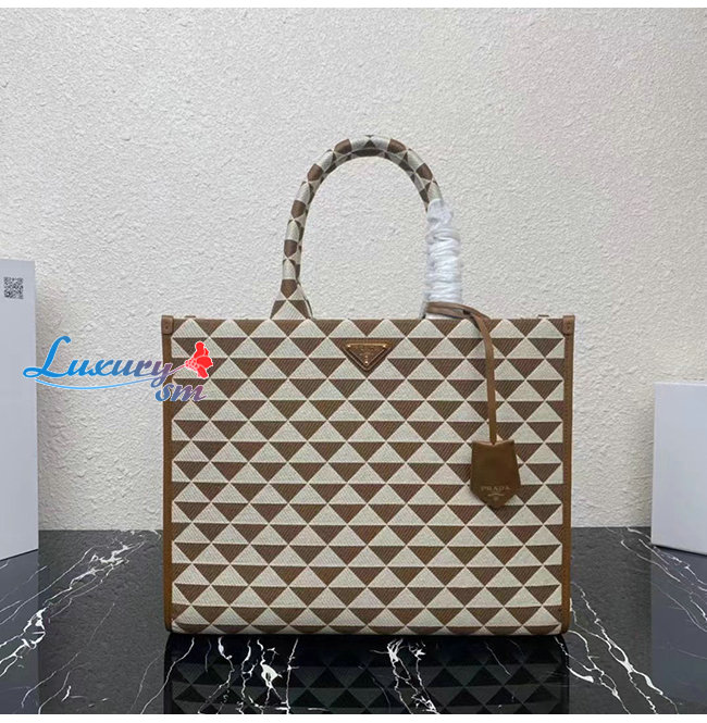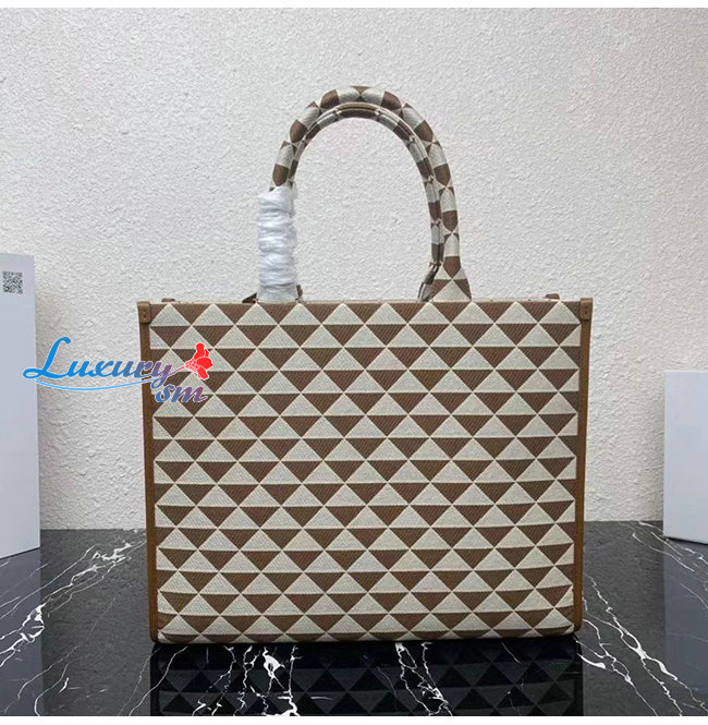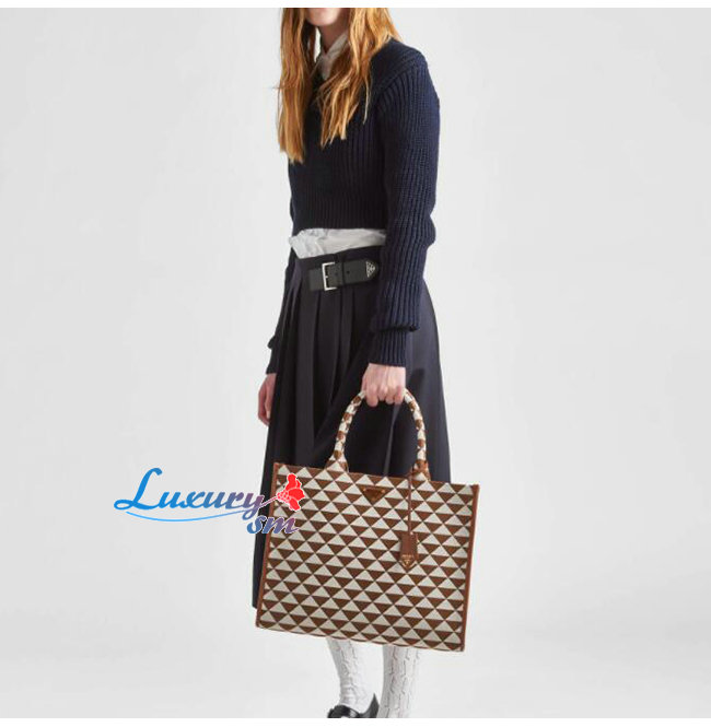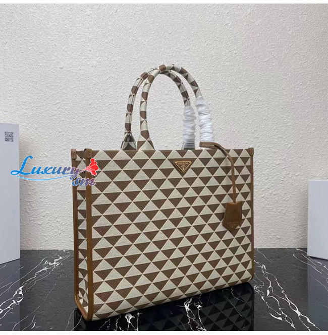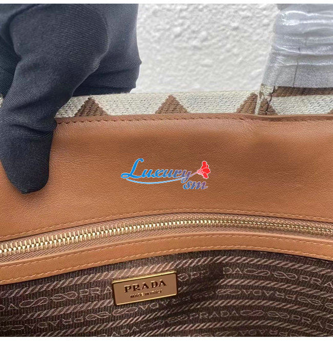[스페셜오더]PRADA-1BA356 프라다 브라운 대형 프라다 심볼 자카드 패브릭 핸드백