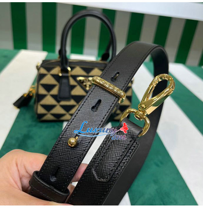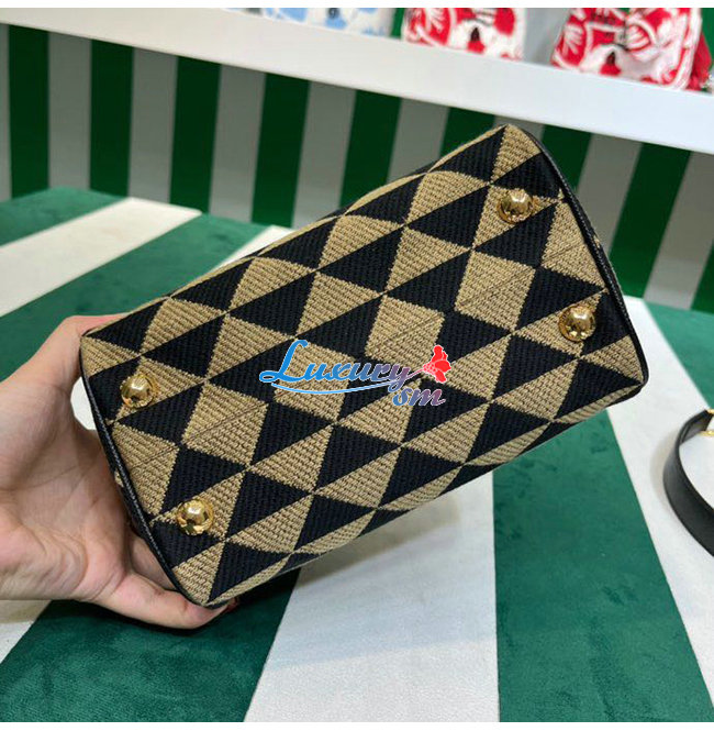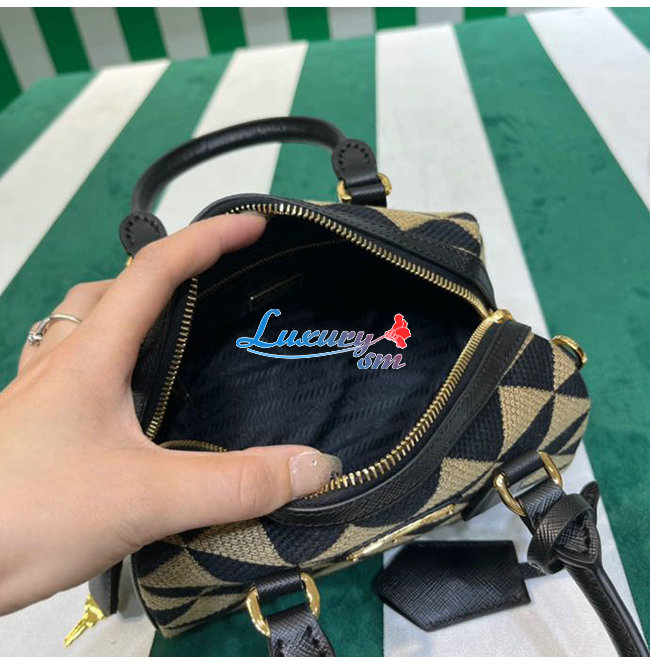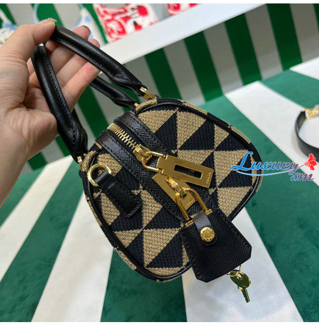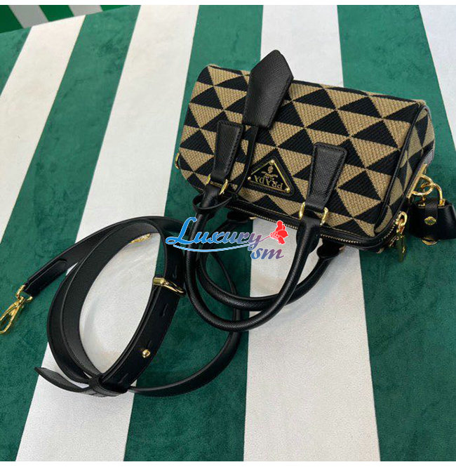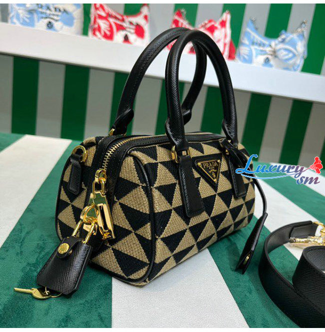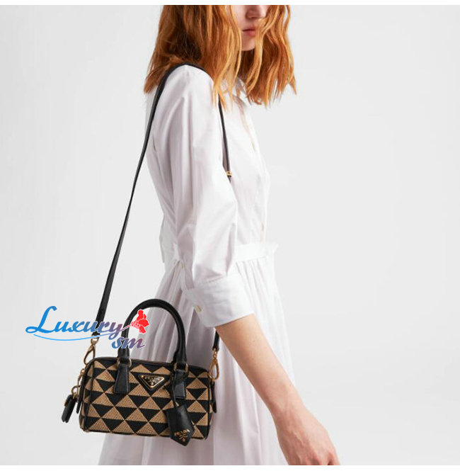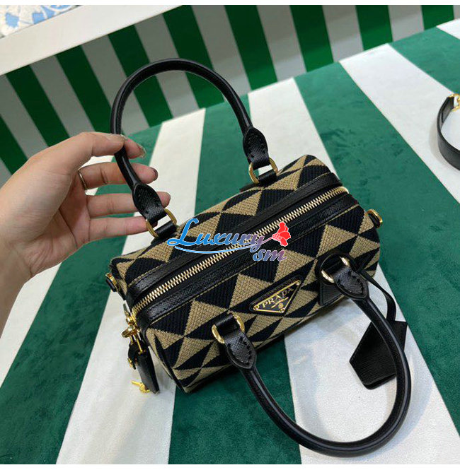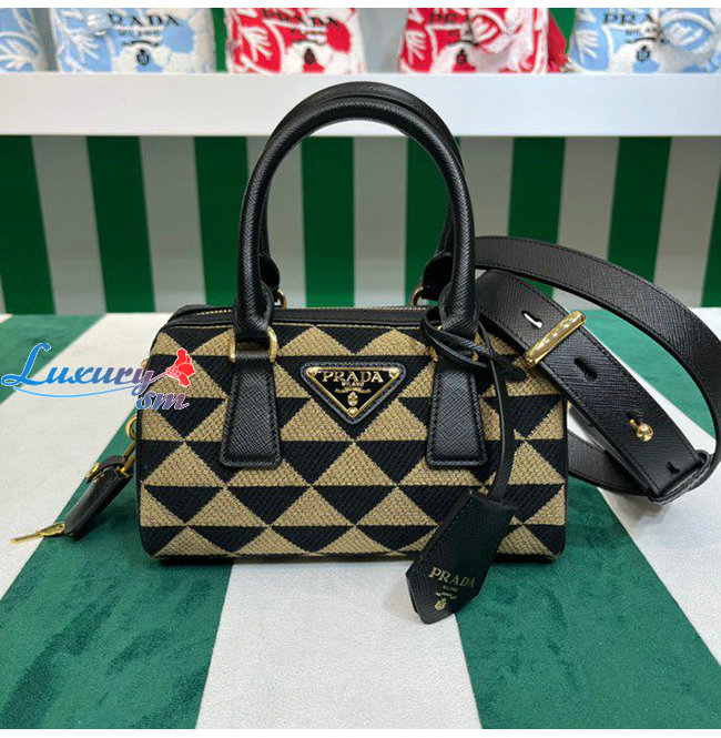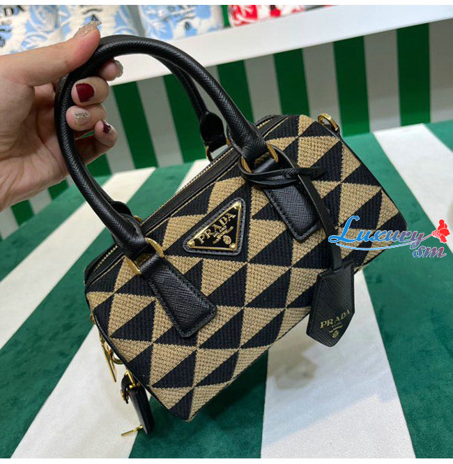 [스페셜오더]PRADA-1BB846 프라다 블랙/베이지 자수 패브릭 탑 핸들 백
