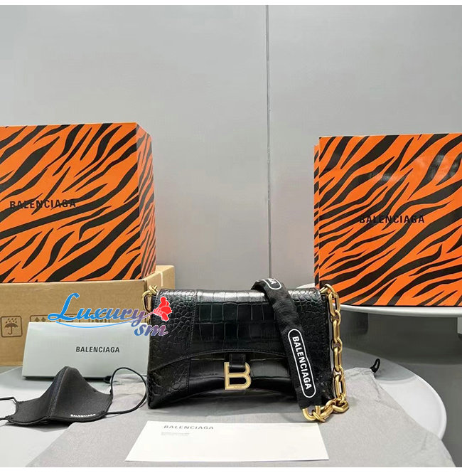 [스페셜오더]BALENCIAGA-689121 발렌시아가 블랙 크로커다일 엠보싱 DOWNTOWN XS 숄더 백
