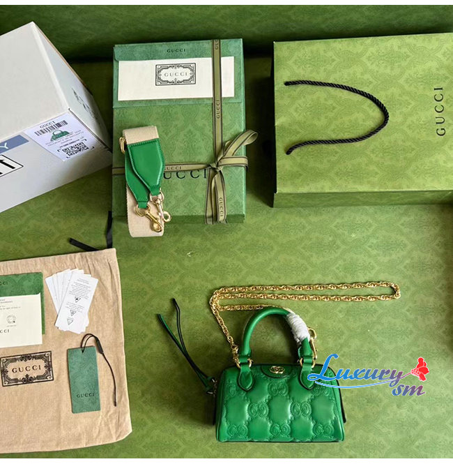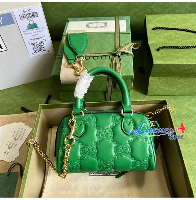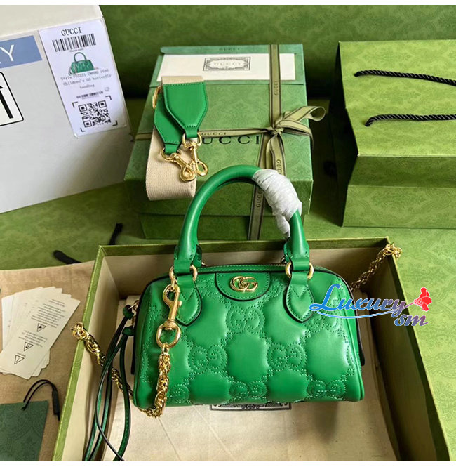 [스페셜오더]GUCCI-702251 3389 구찌 브라이트 그린 GG 마틀라세 레더 탑 핸들백