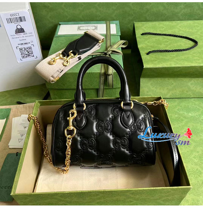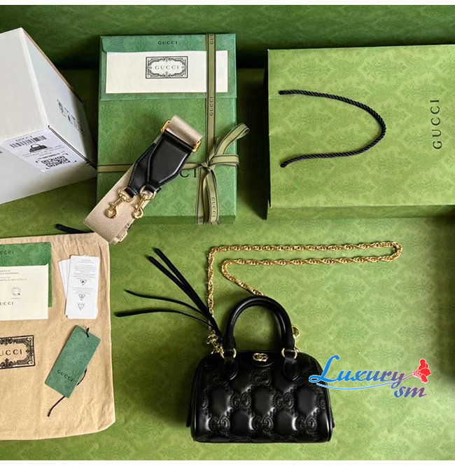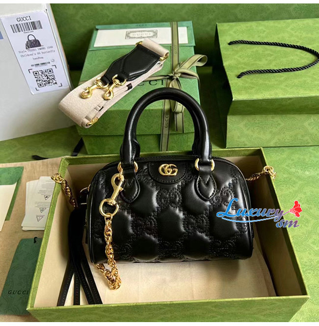 [스페셜오더]GUCCI-702251 1046 구찌 블랙 GG 마틀라세 레더 탑 핸들백