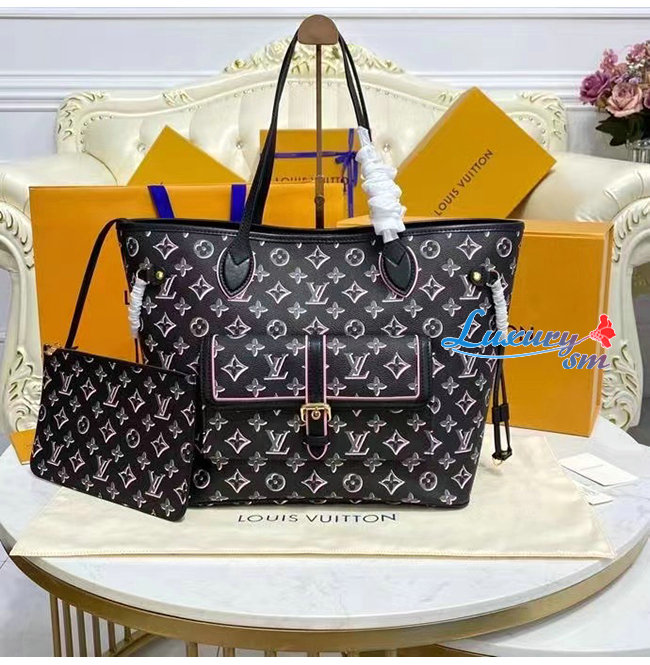 [스페셜오더]LOUIS VUITTON-M52729 루이비통 느와르 에삐 레더 스티커 장식 네버풀 MM 가격 : 340,000원