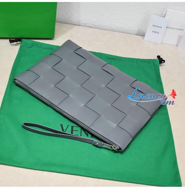 [스페셜오더]BOTTEGA VENETA-649616 보테가 베네타 그레이 인트레치아토 라지 파우치