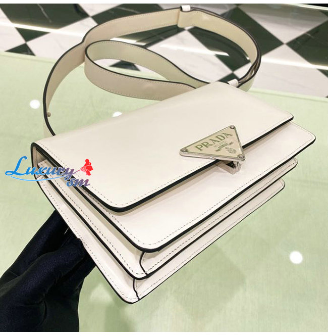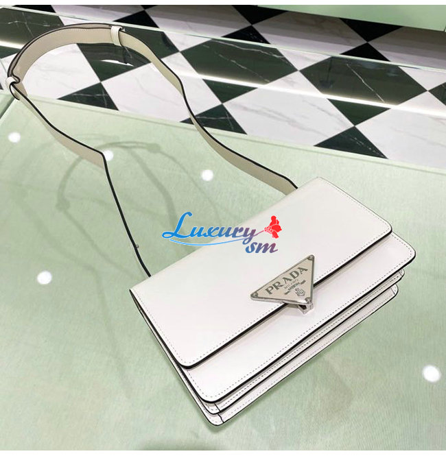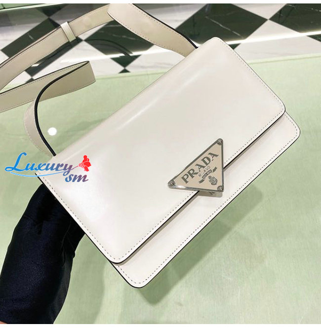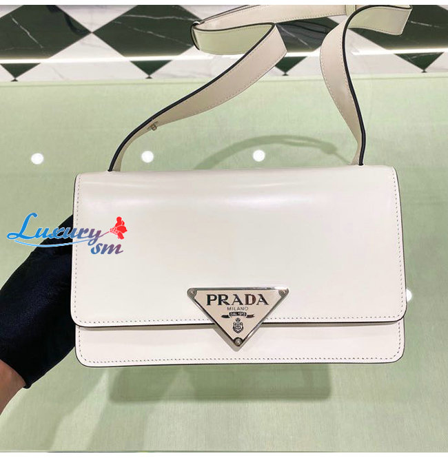 [스페셜오더]PRADA-1BD321 프라다 화이트 엠블럼 브러시드 가죽 숄더 백