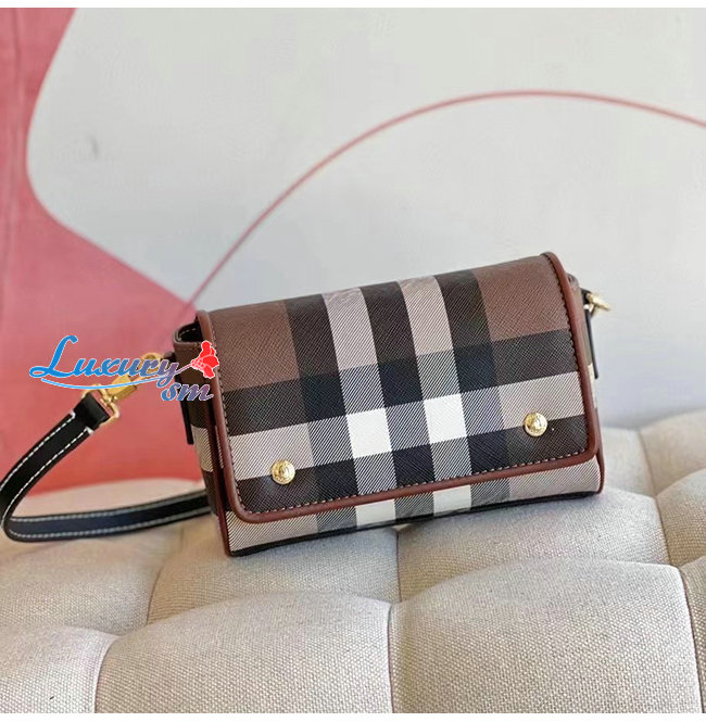 [스페셜오더]BURBERRY-80551721 버버리 브라운 체크 레더 크로스바디 백