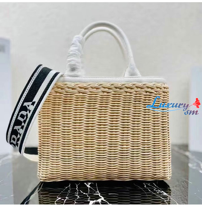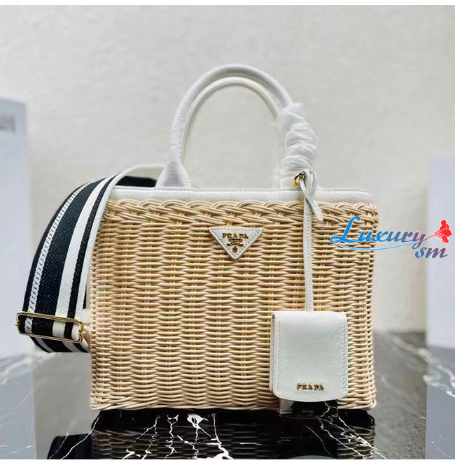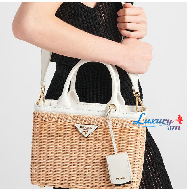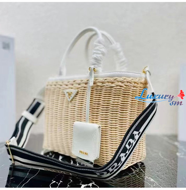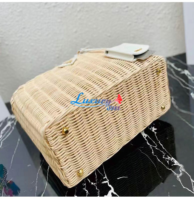 [스페셜오더]PRADA-1BG835 프라다 화이트/베이지 위커 토트 백