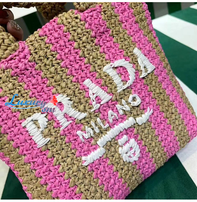 [스페셜오더]PRADA-1BG422 프라다 탠/핑크 라피아 스몰 토트 백