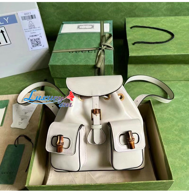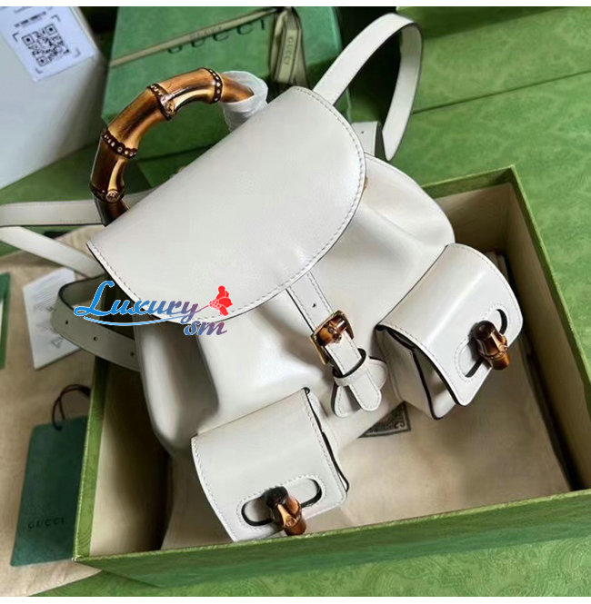 [스페셜오더]GUCCI-702101 9022 구찌 화이트 가죽 뱀부 백팩