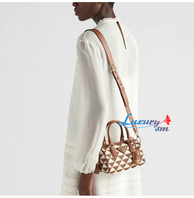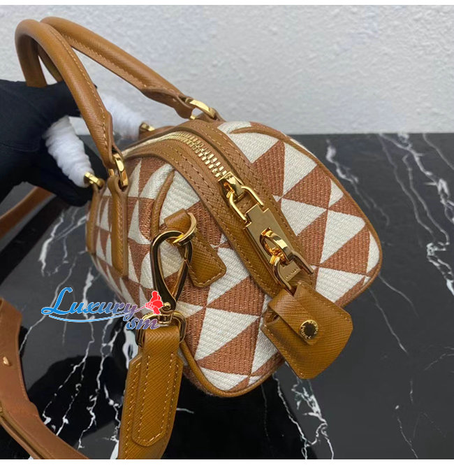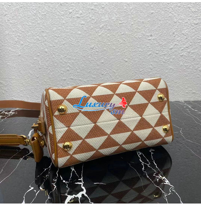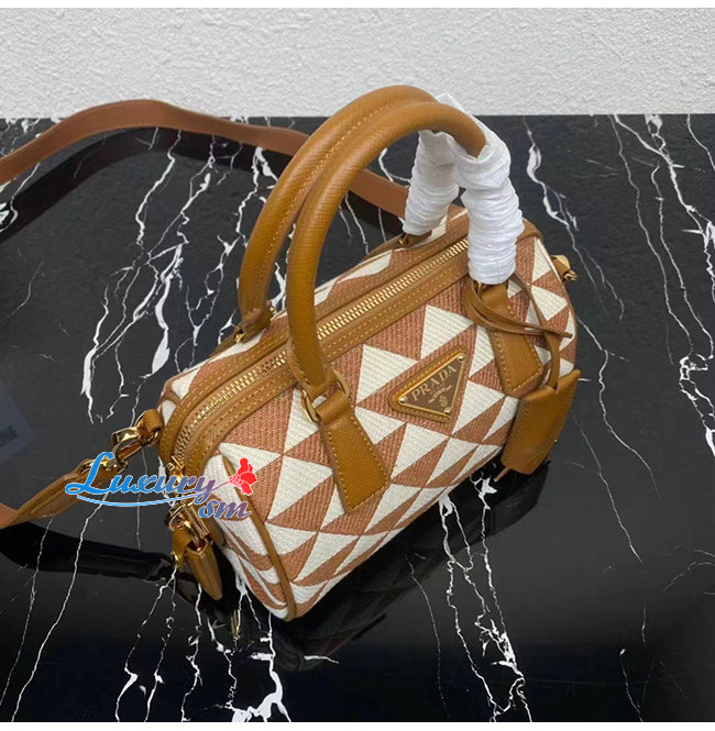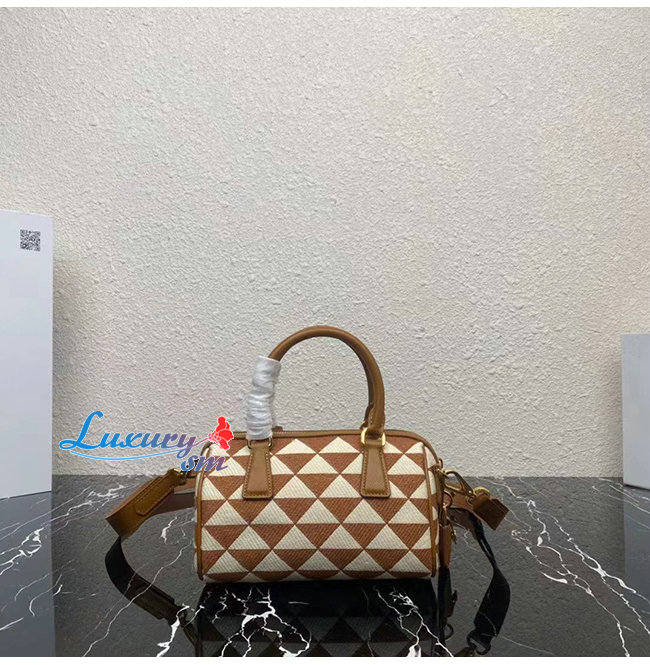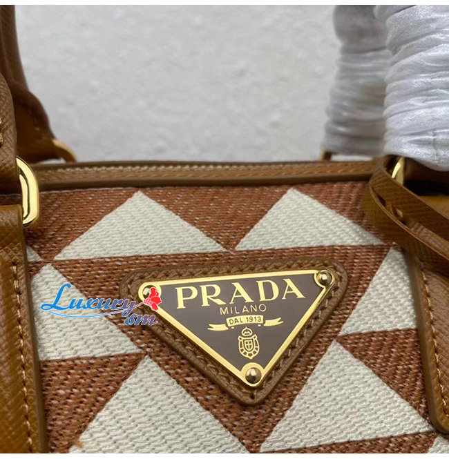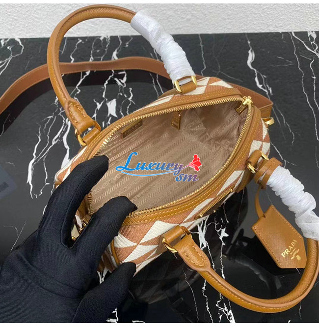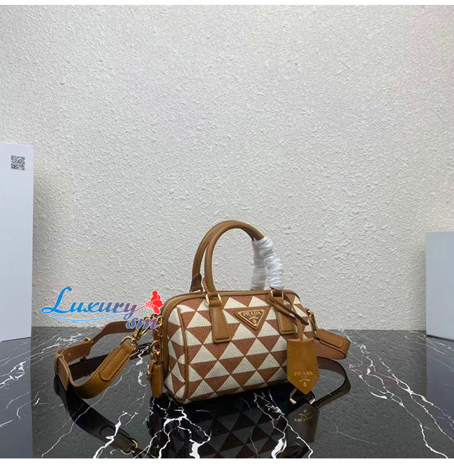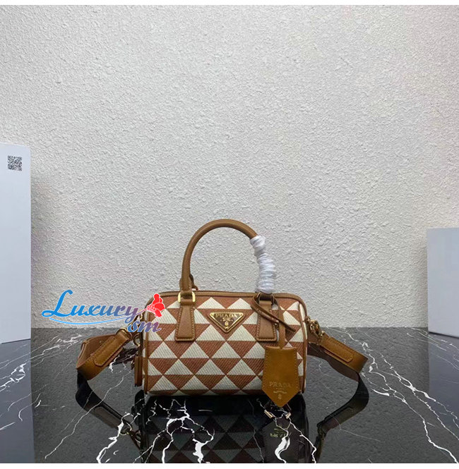 [스페셜오더]PRADA-1BB846 프라다 브라운 자수 패브릭 탑 핸들 백