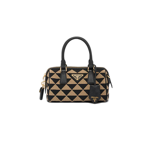 [스페셜오더]PRADA-1BB846 프라다 블랙/베이지 자수 패브릭 탑 핸들 백