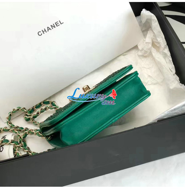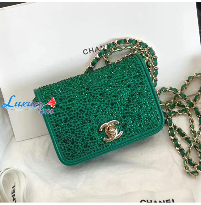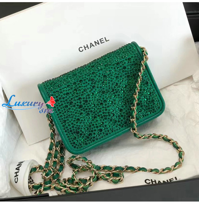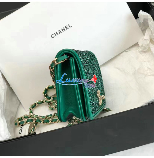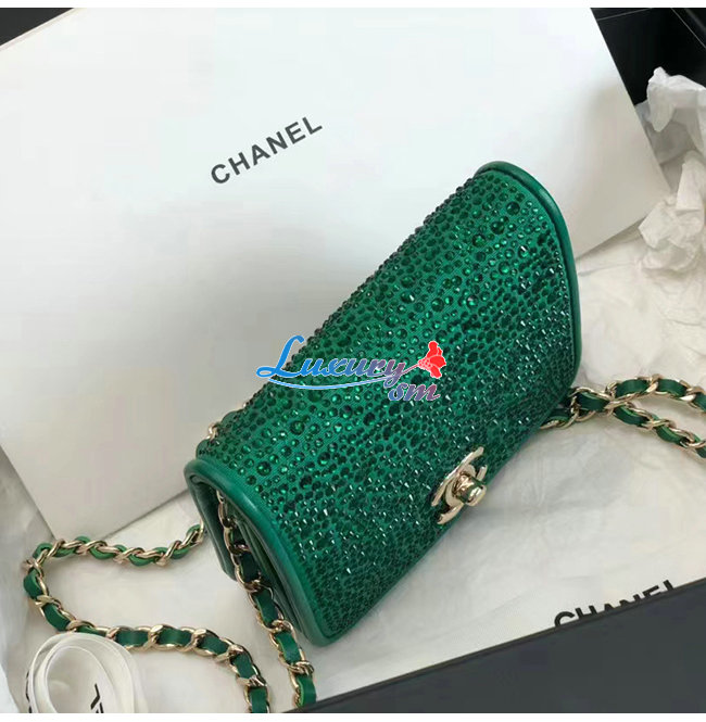 [스페셜오더]CHANEL-AP2879 샤넬 그린 스트라스 램스킨 체인 달린 미니백
