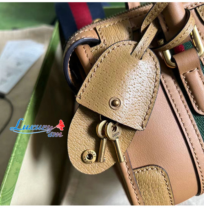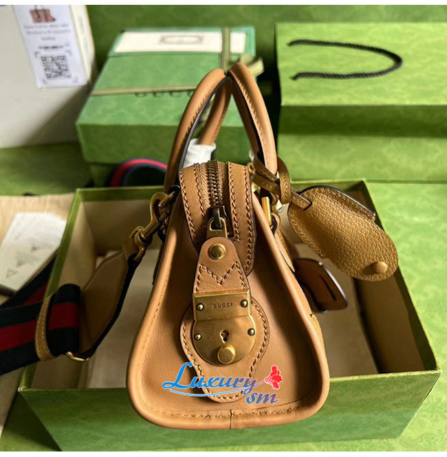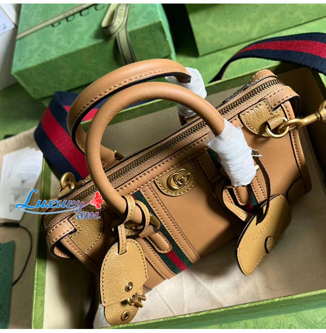 [스페셜오더]GUCCI-715771 9746 구찌 라이트 브라운 가죽 미니 캔버스 탑 핸들백